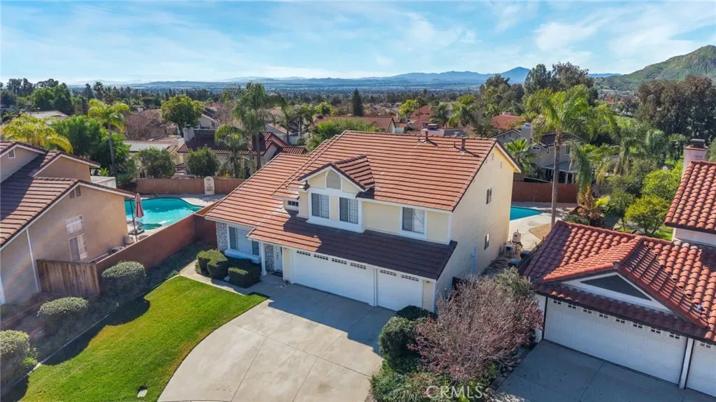 Welcome to Sunnymead Ranch, where your private pool and spa set the tone for this beautifully updated home, ideally located in one of the community’s most desirable cul-de-sacs. Offering 5 bedrooms, 3 bathrooms, and 2,415 sq. ft. of living space on a 7,405 sq. ft. lot, this home blends comfort, style, and lifestyle. Step inside to enjoy laminate wood-style flooring, abundant natural light, and an open-concept layout that flows seamlessly from the living room to the kitchen—perfect for everyday living and entertaining. The kitchen shines with white quartz countertops, natural wood cabinetry with sleek black accents, and views of the backyard oasis. The living area features high ceilings and a cozy fireplace that adds warmth and character. A bedroom and bathroom downstairs offer flexibility for guests or multi-generational living. Upstairs, you’ll find spacious secondary bedrooms and a primary suite with a private balcony overlooking the backyard. Outside, relax and entertain in your low-maintenance backyard, complete with a sparkling pool and spa—perfect for hosting or enjoying year-round Southern California living. As part of the highly sought-after Sunnymead Ranch Association, residents enjoy resort-style amenities including a pool, spa, fitness center, clubhouse, lake with fishing, volleyball, pickleball courts, and more. Conveniently located near schools, shopping, and freeway access, this home truly checks all the boxes.