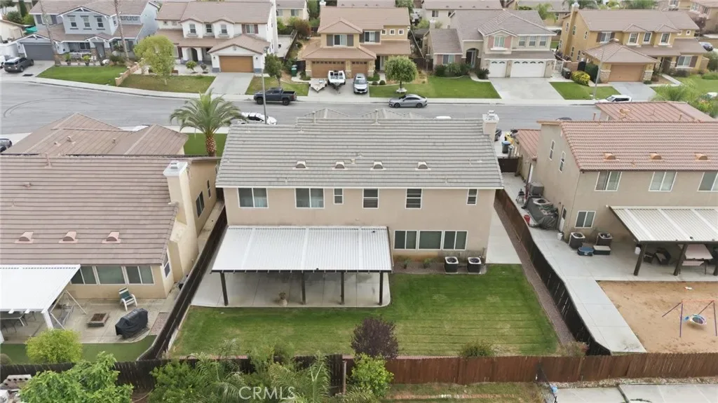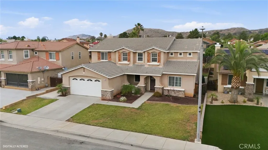 Welcome to 26458 Aldertree Court, ideally situated in a prime Moreno Valley location close to top local conveniences. Enjoy easy access to nearby public schools, Morrison Park, the new BMX park, Stonebridge Shopping Center, and the 60 Freeway—perfect for those seeking a connected, on-the-go lifestyle. Tucked away in a quiet cul-de-sac with no HOA, this beautifully maintained home offers both privacy and flexibility. Spanning approximately 3,931 sq ft on a 8,276 sq ft lot, this spacious two-story residence features 5 bedrooms and 4.5 bathrooms, with every bedroom offering its own attached bathroom—ideal for comfort, privacy, and multi-generational living and a 3 car tandem garage. The inviting open floor plan showcases multiple versatile living spaces that can be used as a formal dining area, home office, or sitting room. The expansive kitchen is designed for both function and style, featuring a large center island, breakfast bar seating, granite countertops, abundant cabinetry, and a butler’s area with a large walk-in pantry, all opening to the oversized family room complete with a built-in shelving unit and a stunning fireplace with decorative gas rocks. Updated extra-tall double French patio doors bring in natural light and create a seamless transition to the backyard. Downstairs includes a junior suite with its own private bathroom and walk-in closet. Throughout the home, enjoy tile flooring, recessed lighting, plantation shutters, and neutral paint tones. Upstairs, an expansive loft offers the perfect bonus space for a second living area, playroom, or gym. Two bedrooms share a Jack and Jill bathroom, while an additional junior suite offers its own private bath. The primary suite serves as a true retreat with dual sinks, an extra-deep soaking tub, privacy plantation shutters, and a mirrored closet door, while additional bedrooms feature mirrored closet doors or walk-in closets. The backyard is designed for relaxation and play, offering an extra-large concrete patio with a covered area and a spacious grass area perfect for kids, pets, or entertaining. A rare opportunity to own a gorgeous, spacious, well-appointed home in a highly convenient location.