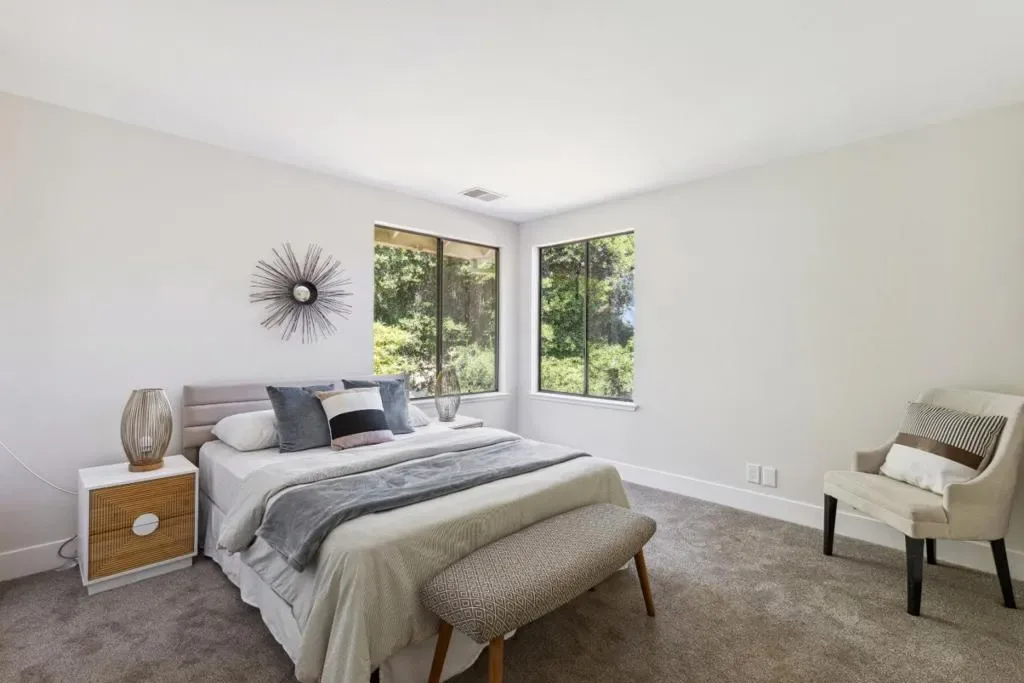 Recently renovated elegant and spacious 4-bedroom, 3-bathroom home located in tranquil Holiday Lake Estates. Move-in ready luxury living. Freshly painted neutral palette inside and out. Nearly 3,000 square feet of ample living space for family gatherings and entertaining. The heart of the home includes a generously sized kitchen, beautiful quartz countertops, and stainless steel appliances, overlooking a light bright family room and sun room. The home boasts quality wood flooring, new carpeting and tile, adding warmth and elegance throughout. Spacious updated primary retreat remodeled with walk-in shower, designer tile, soaking tub and beautiful views. Convenient first floor bedroom/home office. Roomy 3 car garage with extra storage. Sun room and decks overlook natural drought-tolerant landscaping with beautiful mature trees and expansive private back yard. Zoned for top-rated schools including Nordstrom Elementary. Close to parks and walking/hiking trails. Holiday Lake Estates offers a harmonious blend of natural beauty, spacious living, and a strong community spirit, making it an ideal place for families and individuals seeking a peaceful yet connected lifestyle. Minutes from beautiful downtown Morgan Hill shops, restaurants, & events.