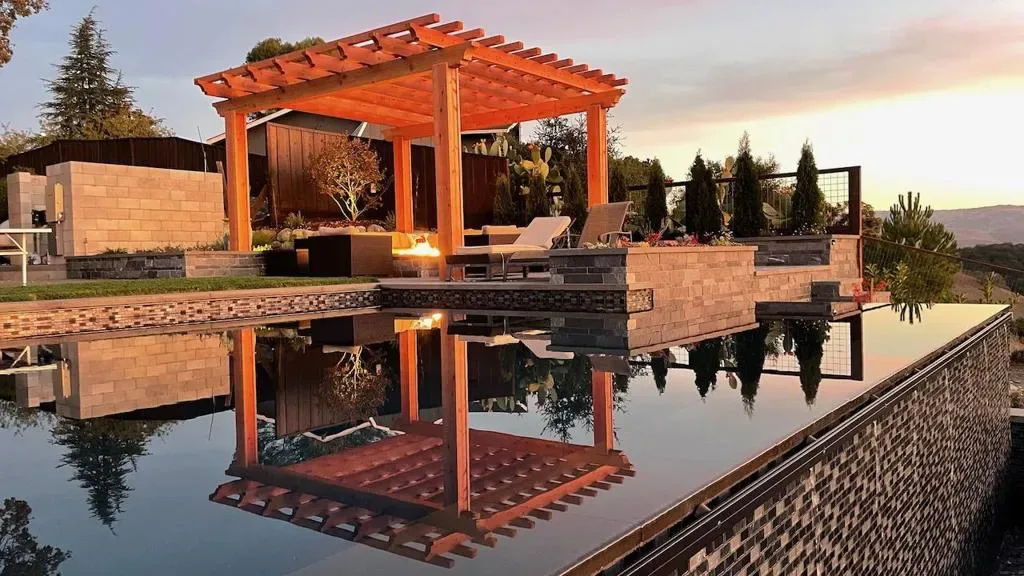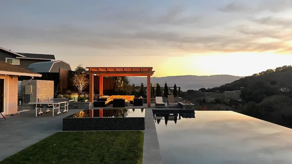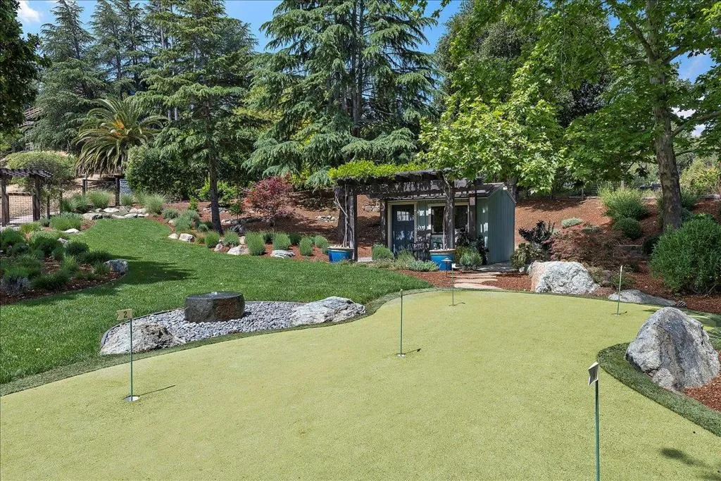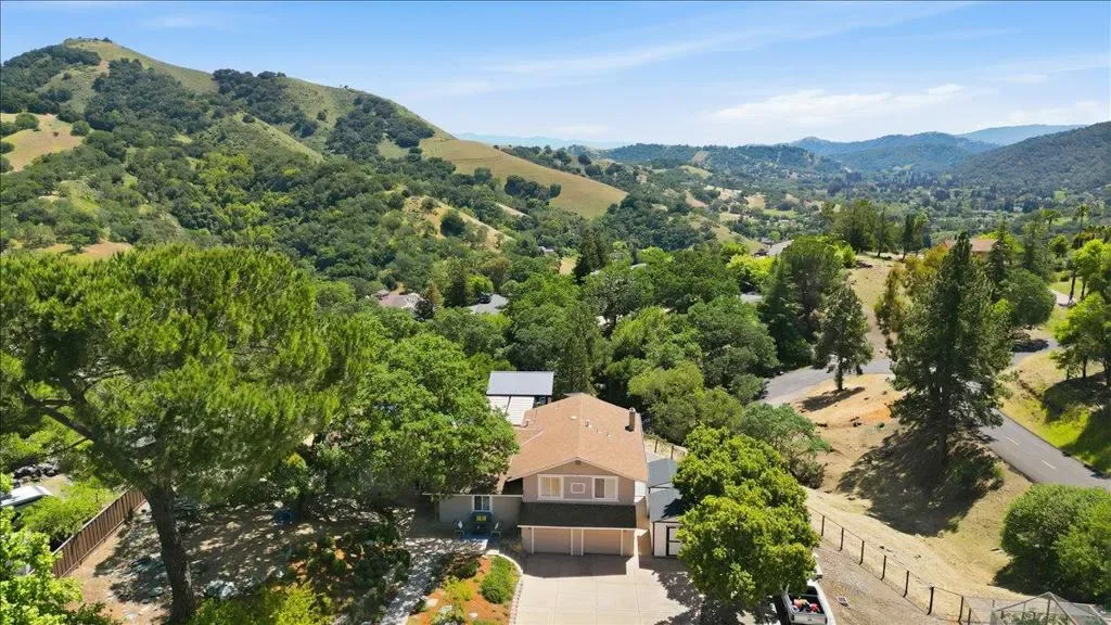 A property like this is almost impossible to find. Resort-style living with sweeping hill views, an infinity-edge pool, and multiple outdoor spaces designed for unforgettable entertaining & everyday living. This updated 4bd/3.5ba tri-level home blends comfort and style with LVP flooring, crown moulding, recessed lighting, open beam ceilings in the living room, and 2-fireplaces. The remodeled kitchen features quartz counters, S/S appliances, double ovens, gas cooktop, and a breakfast bar/island. The spacious primary suite offers a walk-in closet with professionally installed organizer and an updated bath with separate soaking tub and walk-in shower. Step outside to a true entertainers yard. Your own private retreat featuring: 2 golf tee boxes, putting green, outdoor kitchen complete with refrigerators, ice maker, BBQ, pizza oven, two pergolas, and a built-in fire pit. The infinity-edge pool with solar pool heating system and spa create a stunning focal point, while multiple seating areas are perfectly positioned to take in the sweeping hill views. Fully landscaped with garden area and chicken coop. Additional features include: dual pane windows, newer HVAC (~2 yrs), pool solar, reverse osmosis filter, Bluetooth-enabled attic fans, and a sauna. Opportunities like this are rare.