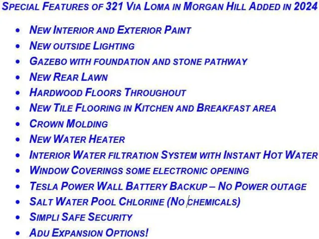 Prime North Morgan Hill Location. NO HOA! Very Private Corner-Lot Oasis with Resort Amenities & Eco-Friendly Tech. Step into this impeccably maintained 4-bedroom, 2-bath retreat, where modern convenience meets your own private resort. Spanning 1,723 sq. ft. of light-filled living space, this home flows effortlessly from a spacious living room into a bright dining area designed for seamless indoor-outdoor hosting. The chef-inspired kitchen shines with granite countertops, stainless appliances, and a large breakfast bar for casual mornings. The primary suite serves as a true sanctuary, featuring a freshly remodeled en-suite with a sleek double-sink vanity. However, the crown jewel is the expansive 9,258 sq. ft. corner lot, one of Morgan Hills most private. Escape to a backyard paradise boasting a sparkling heated pool, herb garden, and a dedicated gazebo/ living area and gym space. Enjoy your front yard With a pergola-covered front patio, leased solar, Tesla Power wall and a garage EV charging port, this home isn’t just beautiful its future-ready.