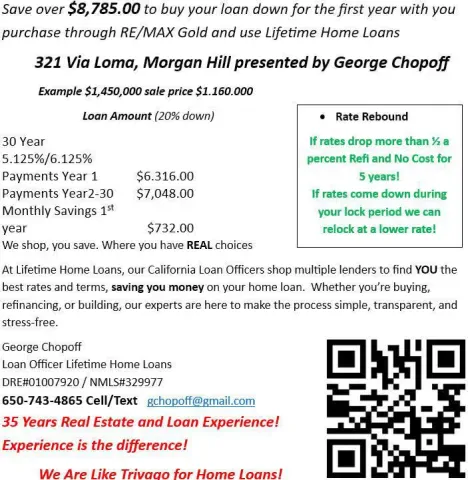 - 321 Via Loma Morgan Hill CA is a Single Family for sale in Morgan Hill, CA, 95037. It is listed for $1,398,888 and features 4 beds, 2 baths, and has approximately 1,723 square feet of living space, and was originally constructed in 2008. The current price per square foot is $812. The average price per square foot for Single Family listings in Morgan Hill is $860. The average listing price for Single Family in Morgan Hill is $1,923,157. To schedule a showing of MLS#ml82040491 at 321 Via Loma in Morgan Hill, CA, contact your James Outland agent at 8057482262.