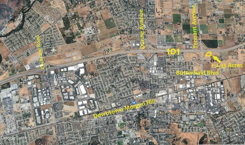 One of the last Freeway frontage/interchange parcels remaining within Morgan Hill city limits. Great location and size for hotel, restaurant, auto sales, or specialty retail development. Flexible “Commercial/Industrial” city general plan designation. Interfaces nicely with the Morgan Hill Sports and Aquatics facilities nearby lending a potential commercial recreational complementary type use. This parcel has frontage on both the south bound 101 on-ramp as well as the freeway itself. Other parcels within this commercial PD have just broken ground and are moving forward now with development plans per the city. If you need a larger site, the contiguous approximate 6-acre parcel may also be available.