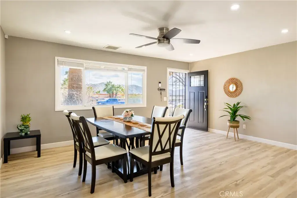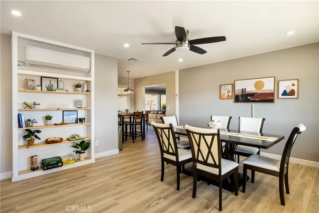 Outside, the private pool area beckons with its sparkling water, perfect for cooling off on hot desert days. The beautifully landscaped backyard is an entertainer’s paradise, featuring a spacious patio, BBQ area, and cozy fire pit for evening gatherings under the stars.