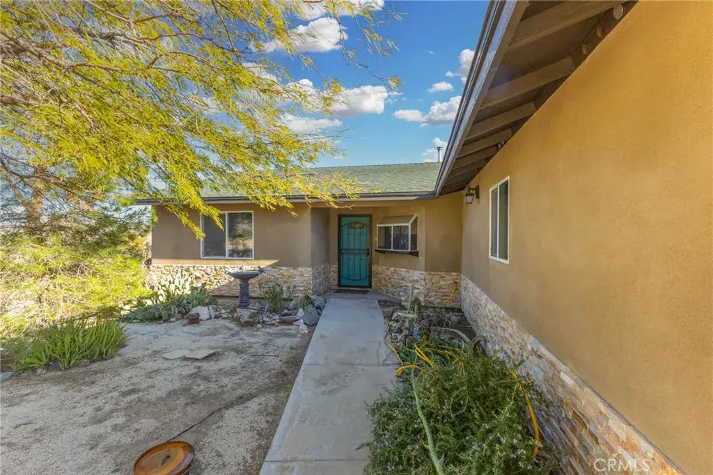 **Wood floor has been removed, and new carpet has been laid** Set against the wide-open beauty of Morongo Valley, this 3-bedroom, 2-bath home offers space, privacy, and hill views on a sprawling 0.82-acre lot. Inside, the front door opens into a roomy living area anchored by a glass back patio door that fills the space with natural light. The layout flows into the dining room, where a wood-burning furnace provides warmth and character, and continues into a fully remodeled kitchen. The kitchen features abundant counter space, generous storage, and updated stainless-style appliances, with plenty of room for a coffee bar or additional prep space. The primary bedroom is generously sized with tile flooring and its own private bathroom featuring a walk-in shower, extra roomy counters, and built-in cabinetry. Two additional bedrooms provide flexibility for family or guests and are conveniently located near a second full bathroom with a tub/shower combination and a wide vanity. Outside is where this property really stands apart. A covered porch with a wood pergola opens to an expansive backyard framed by mature trees and sweeping hill views. There’s room for gardening or entertaining, along with a small horse riding ring. Lots of room for additional big toy storage, plus a backyard shed. Additional highlights include two-car garage and extensive parking with RV access, solar panels, and a water softening system. The location offers a quiet, laid-back atmosphere while remaining just a short drive from Highway 62, with convenient access to Yucca Valley, Joshua Tree, and Palm Springs. Broker and agents do not represent or guarantee the accuracy of the square footage, income, expenses, condition, development potential, bedroom/ bathroom count, lot size or lot lines, dimensions, permitted or non-permitted spaces, or school eligibility. Buyer is advised to independently verify the accuracy of all information with appropriate professionals. There are no warranties or guarantees, buyer to rely solely on his/her/their own findings.
