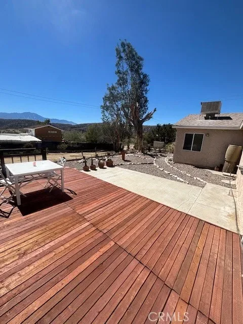 Clear Termite! Clear Septic and appraised for $390,000! Priced to sell! This charming Morongo Valley property is a true desert retreat, perfect as your full-time sanctuary or even a potential Airbnb. Featuring 3 spacious bedrooms, 2 bathrooms, and generous storage, the home combines comfort with thoughtful updates throughout. The open layout, enhanced by a cozy wood-burning stove, creates a warm and welcoming atmosphere from the moment you step through the new front door. The kitchen has been refreshed with newly stained cabinets, butcher block countertops, a sleek black sink, and stainless-steel appliances. The primary suite feels like a private getaway, offering a sitting area, walk-in closet, and en-suite bath. An updated guest bathroom and two additional bedrooms—each with large closets, carpeting, ceiling fans, and individual mini-split AC units—ensure visitors feel right at home. French doors open to a beautiful wood deck overlooking a fully fenced backyard oasis. Mature landscaping, including a lemon tree, creates a tranquil setting with walking paths that wind between the home and garage. Energy efficiency is built in, with solar panels, Tesla batteries, and a new electric panel keeping utility costs low. Conveniently located less than 10 minutes from Big Morongo Canyon Preserve, local hiking trails, and the I-10 freeway—and under 30 minutes from downtown Palm Springs—this home offers the perfect balance of peaceful living and easy access to amenities.