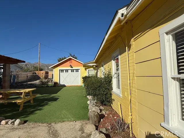 This charming two bedroom/two bath home with front sunporch entry is light and bright, with an attached bonus room (converted garage) not included in the square footage. Indoor-outdoor living with astroturf between the house, bonus room and gazebo. Ample parking behind gates. Yale locks on kitchen entry and stained glass door to the bonus room are an added convenience, especially if using as an Airbnb. Conveniently located on a paved road in the small high desert community of Morongo Valley, just 10 minutes down the mountain to Palm Springs, or 15 minutes up the mountain to Yucca Valley and beyond, to Joshua Tree National Park. This cozy home is on over 1/3 acre, gated and fenced for privacy. Remodeled in 2021 and 2022 – The most notable is the renovated gas fireplace in the master bedroom.