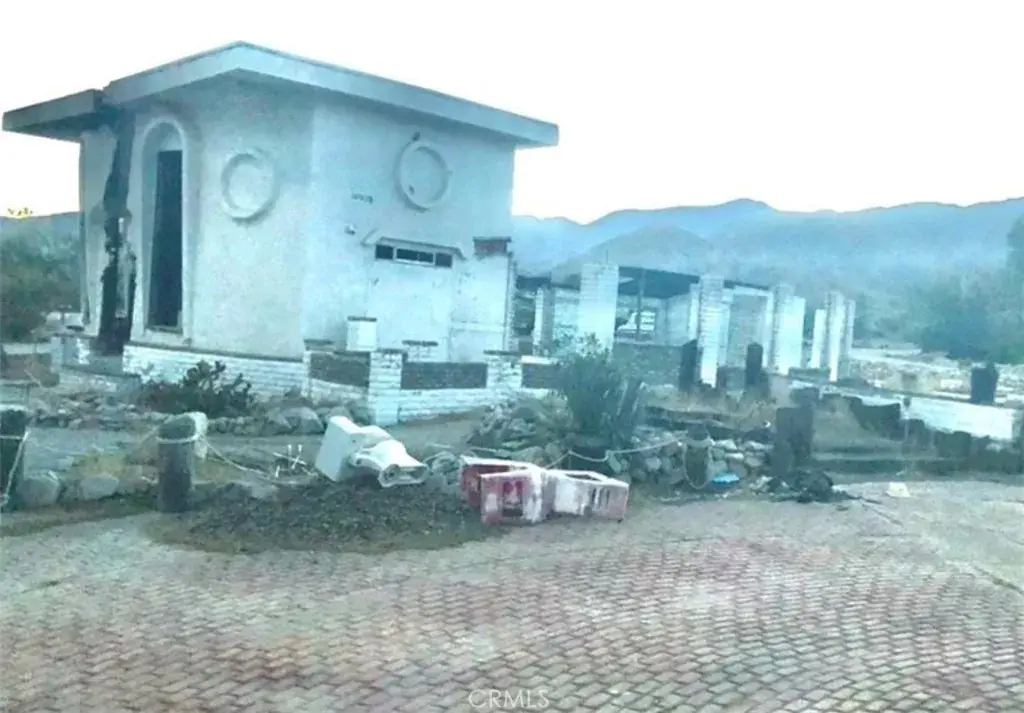 The added living room is partially damaged. Irrigation pluming is intact but the house needs new plumbing and electrical. Stamped concrete and concrete driveway all around. Concrete wall surrounds the property.