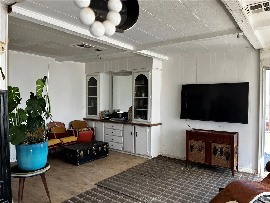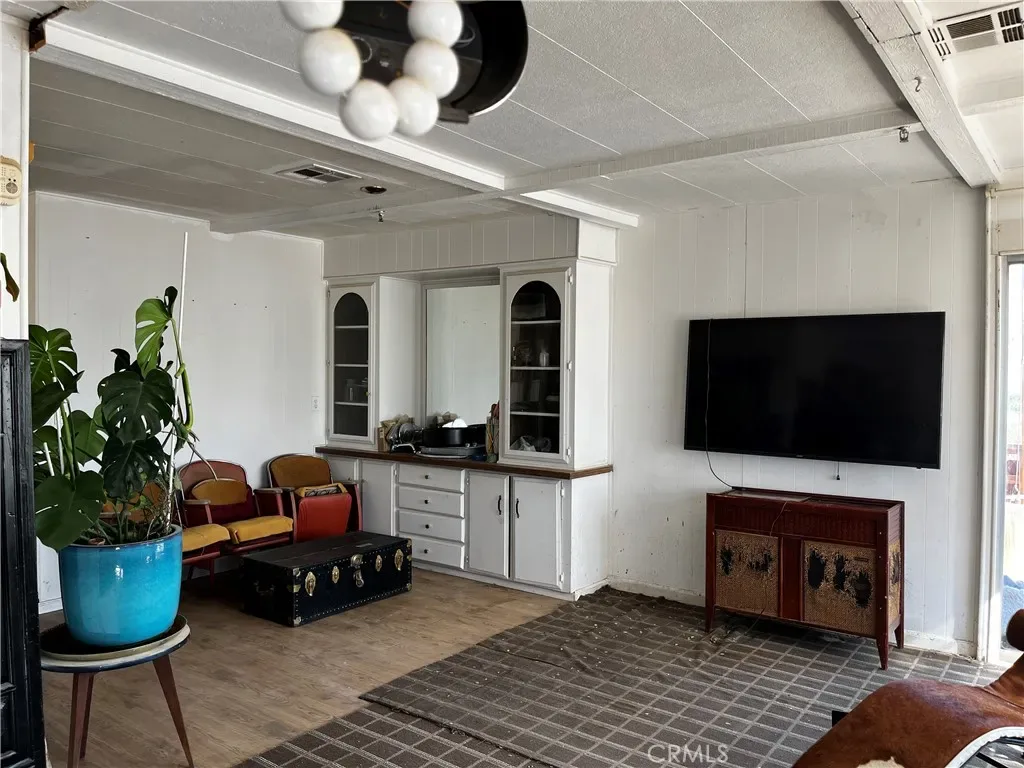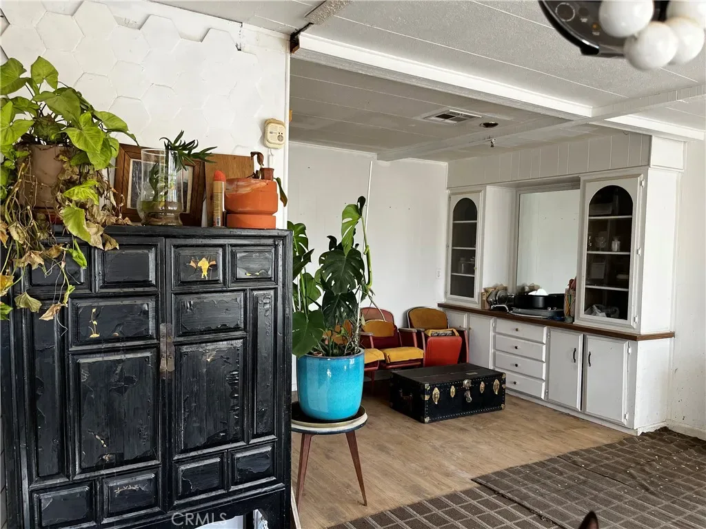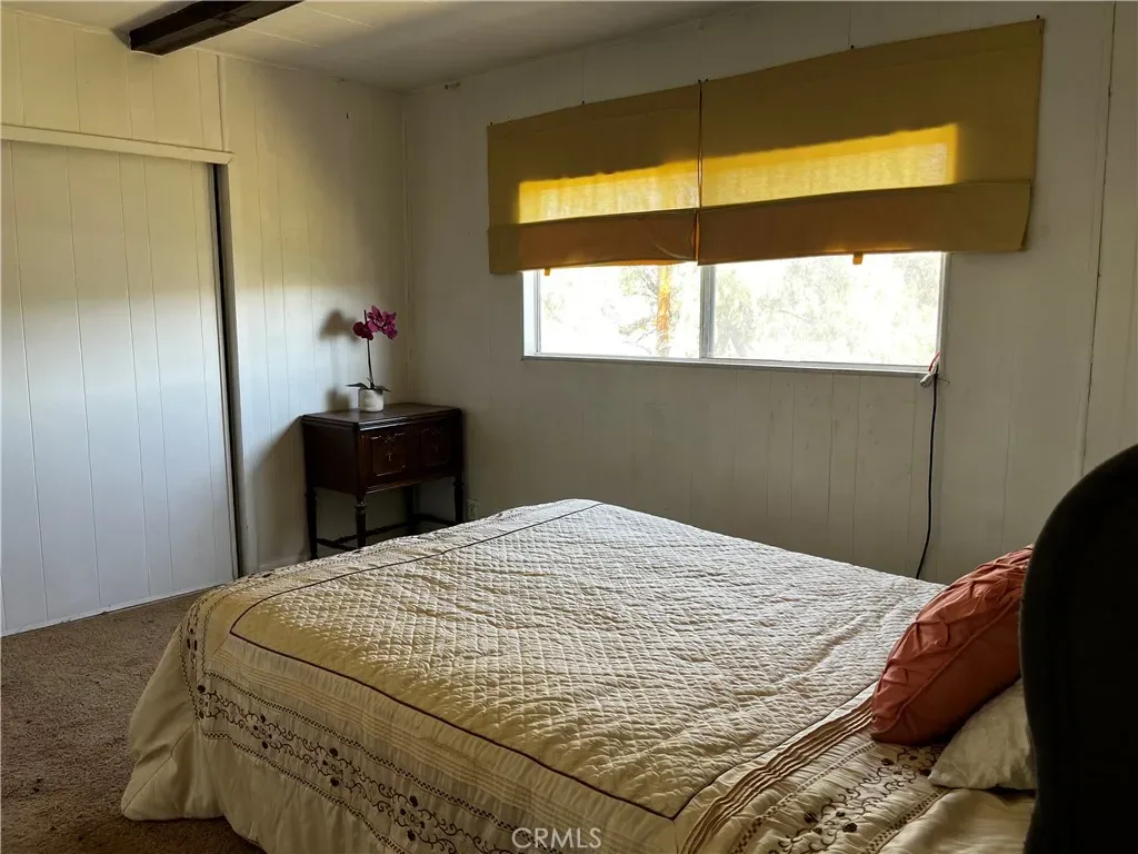 Spacious 3-bedroom, 2-bath manufactured home on a generous 0.625-acre lot, offering 1,600 sq. ft. of comfortable living space. Enjoy sweeping desert and hillside views from every angle, perfect for capturing peaceful sunsets and starlit nights. The open floor plan features a bright living area, a functional kitchen, and a primary suite with a private bath. With ample outdoor space for entertaining, gardening, or RV parking, this property blends privacy and scenic beauty in a serene desert setting—your own quiet retreat just minutes from town conveniences. Mailbox is on 29 Palms just a 1/4 mile away. Currently running on solar power (120 and 220V) and a water tank but electrical and municipal water are at the property and can be hooked up for reasonable costs. The manufactured home will need to be anchored to the concrete slab it is on and an occupancy permit obtained by the buyer to allow permanent residency. Some TLC required.