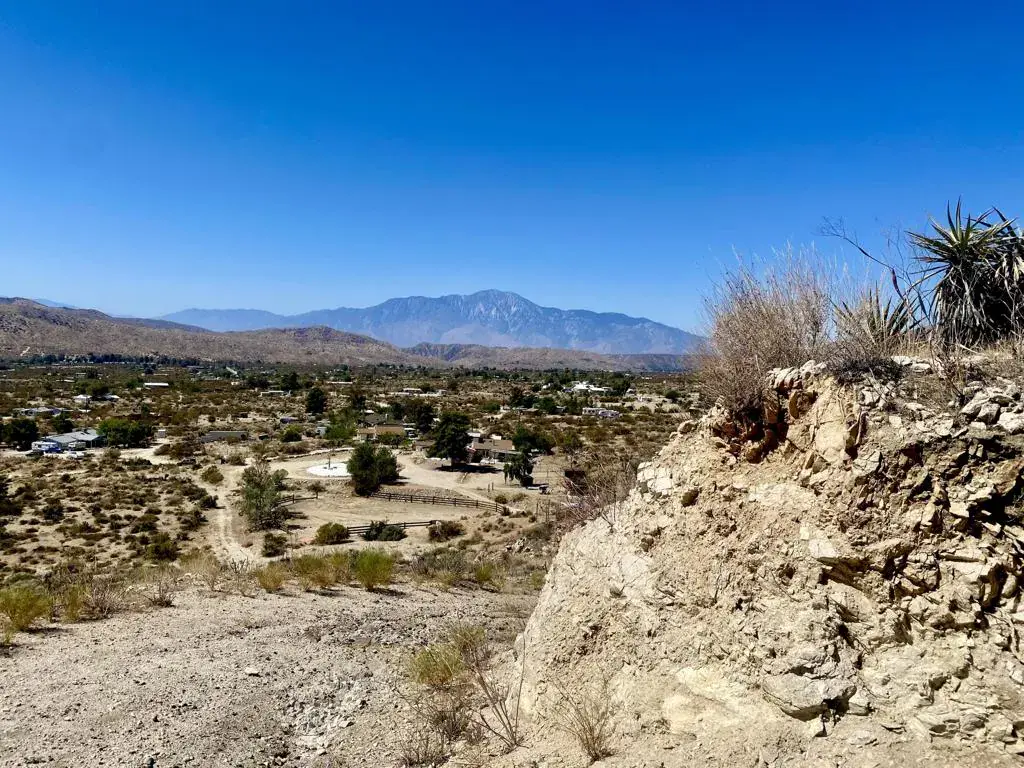 Beautiful & Panoramic 5 acres perched across a breathtaking hilltop ridge. Spectacular views of snow caps on Mt San Jacinto and the little San Bernardino Mtn range. A driveway easement ascends over 100ft to the building pads. Possibilities of a multi-level sanctuary with several opportunities for several building areas. Gorgeous desert fauna with cholla cactus, creosotes and yuccas scattered among the rocks and boulders. This magical lot is close to thousands and thousands of wilderness acres for you to explore. Horse property. Starry nights and shimmering city lights. Higher elevation offers milder summers than the Coachella Valley which is just a short drive down the Morongo Pass. Ideal for a modern luxury compound hideaway. The county may allow for two homes and guest homes. The property appears to be RL-5 zoned lot which may allow for owners to enjoy limited camping. Utilities appear to be on Cheyenne with power and water access with the deeded easement. Seller owns mineral rights which are negotiable. 36 miles to Palm Springs. 20 miles to the Joshua Tree National Monument where about 3 million tourists visit the park annually. 45 miles to the Coachella Valley Music & Arts Festival which averages 100,000 visitors each day of the event. 114 miles to Los Angeles. Make your dreams come true. Buyers must contact the county planners for all questions on building and uses. Buyers must contact the appropriate utilities agencies for all questions on utilities. Address is a real assigned address, easement is to Cheyenne. GPS: 34.08946, -116.54871 Don’t Wait! – Call Now! APN: 0581-161-06-0000