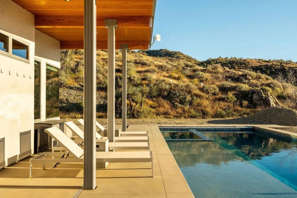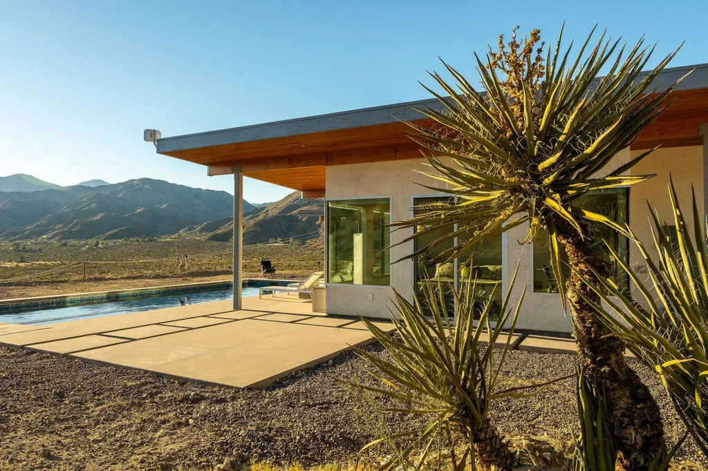 Perched high on nearly nine acres across three parcels, this striking 2022-built modern home offers a rare sense of space, privacy, and connection to the surrounding landscape. Expansive walls of glass frame sweeping panoramic views, allowing natural light to pour in while seamlessly blending indoor and outdoor living–creating a daily backdrop of dramatic sunsets and endless open sky.The elevated hillside setting enhances both tranquility and perspective, giving a true retreat-like feel while still providing the comfort of a thoughtfully designed, newer construction home. Evenings invite quiet moments of stargazing, where the vast desert sky becomes part of the experience.The saltwater pool and spa elevate outdoor living, offering a refreshing and low-maintenance way to relax, entertain, and unwind against a stunning natural canvas. Every element of this property is designed to deliver a lifestyle of serenity, beauty, and modern comfort–where privacy, views, and architectural elegance come together effortlessly.