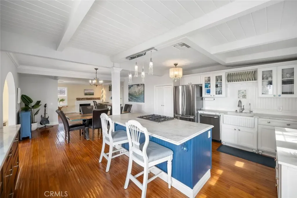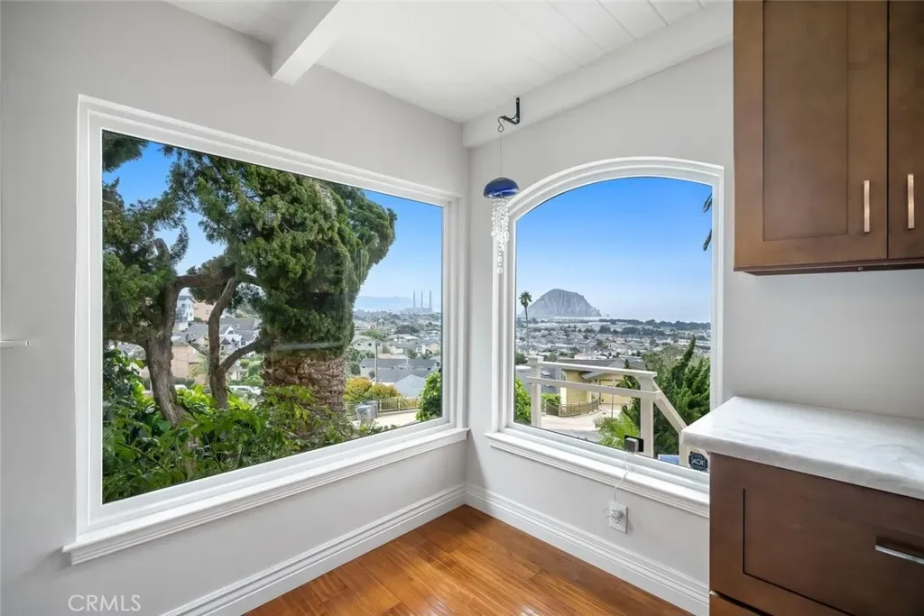 Welcome to Morro Bay! Upon entering this stunning home, you’ll enjoy single-level living with two bedrooms and two baths across 1,505 square feet of living space on a 4,268-square-foot lot, plus a 400-square-foot full ocean-view deck offering 180° panoramic views of the Pacific Ocean and Morro Rock. From the moment you enter, 18-foot ceilings and interiors full of natural light create a sense of openness and warmth.The open-concept layout seamlessly connects the living, dining, and kitchen spaces—perfect for both relaxed everyday living and effortless entertaining. Rich engineered mahogany wood flooring, elegant crown molding, and expansive front-facing windows frame breathtaking, unobstructed views of the Pacific Ocean and iconic Morro Rock—visible from nearly every corner, including the kitchen, dining area, family rooms, and even the entryway. At the heart of the home, the recently remodeled kitchen is as functional as it is beautiful. Enjoy cooking with a view at the center island with gas range and bar seating, complemented by marble countertops, a farmhouse sink, pendant lighting, and crisp white cabinetry with glass accents and built-in storage. The living room offers a cozy environment and a flexible workspace—ideal for remote work or creative pursuits—while the dining area, with beautiful views and finished with a statement chandelier, creates the perfect setting for memorable meals. Both bathrooms have been tastefully updated with unique, designer finishes, adding a touch of luxury and personality to the home. A finished attic provides valuable bonus space for storage, hobbies, or a tucked-away office. Step outside to the show-stopping 400-square-foot ocean-view deck—an entertainer’s dream. Perched above the garage, this expansive space delivers sweeping 180° panoramic views, making it the perfect backdrop for sunset gatherings, morning coffee, or simply soaking in the coastal beauty. Additional highlights include a dedicated laundry area, two-car garage, ample off-street parking with space for an RV, low-maintenance landscaping, and a three-way reverse osmosis drinking water system. This is more than a home—it’s a front-row seat to one of California’s most breathtaking coastal settings. Information not verified.