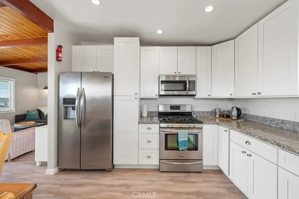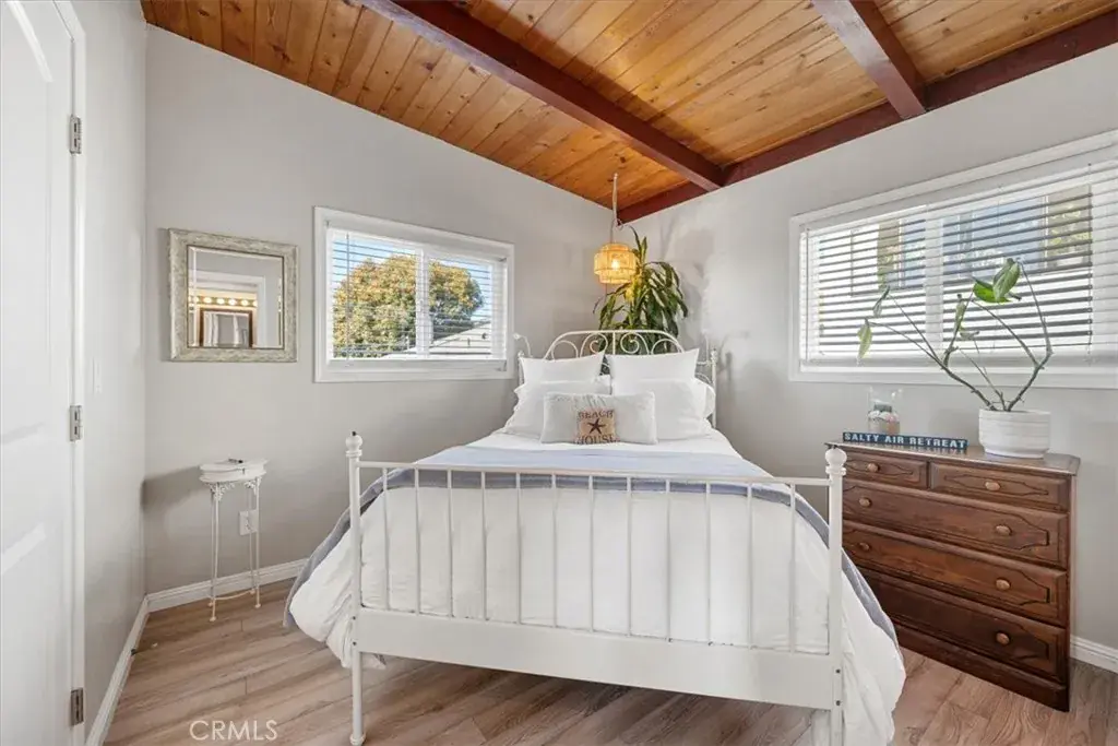 Enjoy ocean and Morro Rock views from this two story, 3 bedroom 3 bath home with short distances to the beach and shopping. Upstairs you will find a fully furnished 2 bedroom 1.75 bath home featuring open beam ceilings, laminate flooring, dual pane vinyl windows, granite countertops, modern appliances and on demand water heater. It is currently being used as a vacation rental. The upstairs deck is the perfect spot for morning coffee or evening unwinding to picturesque sunsets. The lower level is set up as a separate In law or guest studio complete with a full bath and stacked laundry unit, ideal for guests, extended family or rental potential. A single car garage for your car and/or additional storage with laundry hook ups. Driveway has plenty of parking. Whether you’re looking for a second home or a weekend retreat, it’s move in ready! This property offers a lot of options for someone looking to enjoy the Morro Bay Beach Lifestyle in a great spot.