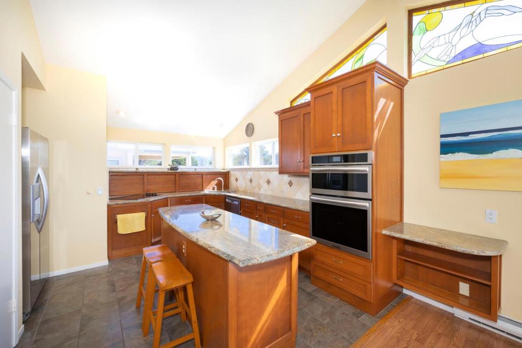 Very special and well maintained home in a spectacular location! Just blocks from the beach and across the street from Open Space, this home epitomizes elegance, and tranquility. Wonderful views of the open space from the dining room and the upstairs deck. Great hiking is just down the street! Kitchen and dining area has vaulted ceilings and loads of natural light along with the views. The stained glass windows at the top add a special feature to the experience. Living room also has vaulted ceilings and looks on to a landscaped empty lot. The bedrooms are good sized, especially the downstairs one that has been used as an office. It’s very large and contains a Murphy bed. The primary bedroom also has vaulted ceilings and a very large walk-in closet. The back yard continues the feeling of beauty and tranquility. A nice grassy area, flowering plants and the delightful spa will be your respite at the end of the day. This property is in zone 3. Ask agent for more details.