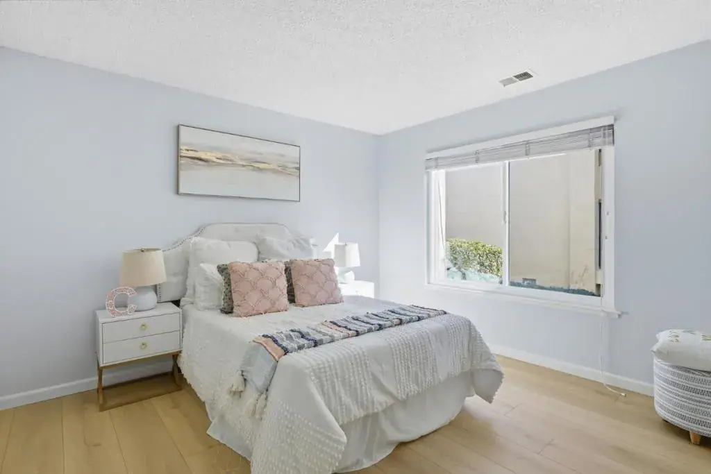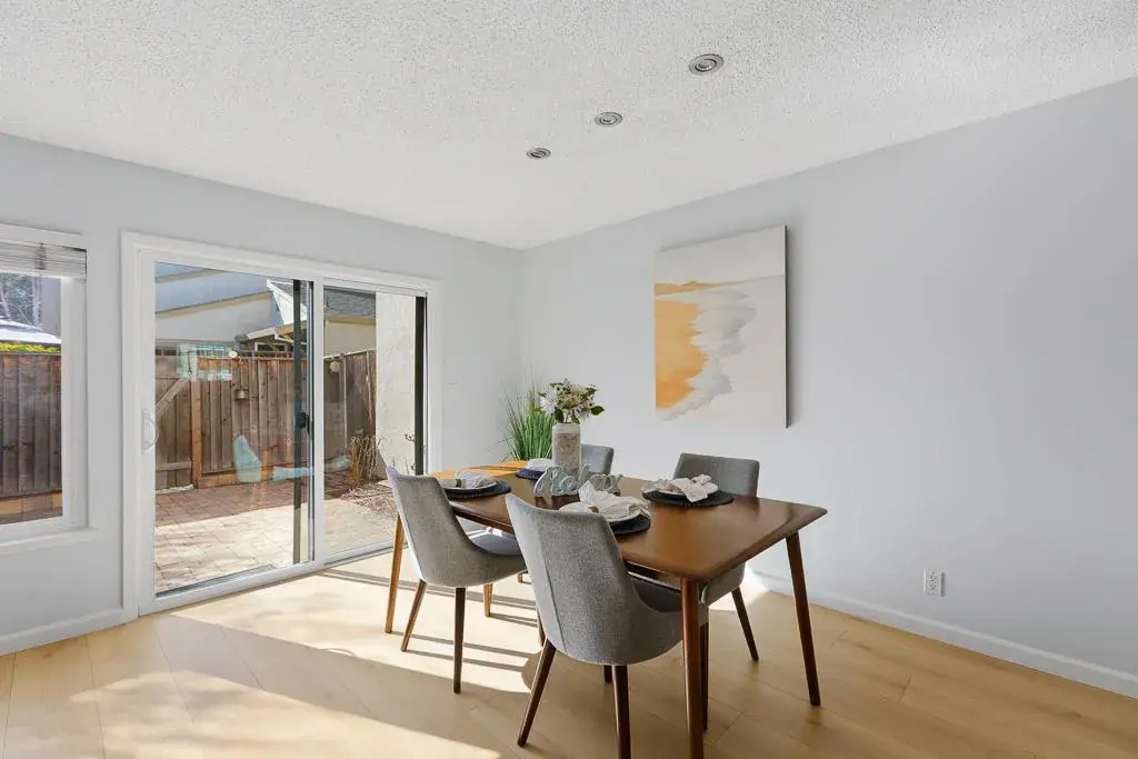 Welcome to this beautiful and spacious two-story townhouse with a private yard, ideally located in the heart of Mountain View. This inviting home features 3 bedrooms and 2 full bathrooms, including a rare ground-level bedroom with an ensuite bathperfect for guests, multigenerational living, or a private home office. The home showcases a well-appointed kitchen with granite countertops that opens to a generous living area with high ceilings, filling the space with abundant natural light. Two large windows and a floor-to-ceiling sliding glass door overlook the private backyard, creating a seamless indoor-outdoor living experience. Thoughtful updates include brand-new flooring, upgraded carpeting, and fresh interior paint, resulting in a bright, modern, and move-in-ready aesthetic. The private yard offers a wonderful extension of the living spaceideal for relaxing, entertaining, or everyday enjoyment. Located just minutes from downtown Mountain View, Caltrain, and major tech campuses including Google, Meta, LinkedIn, and Amazon, this exceptional home offers the perfect blend of comfort, convenience, and long-term value in the heart of Silicon Valley.