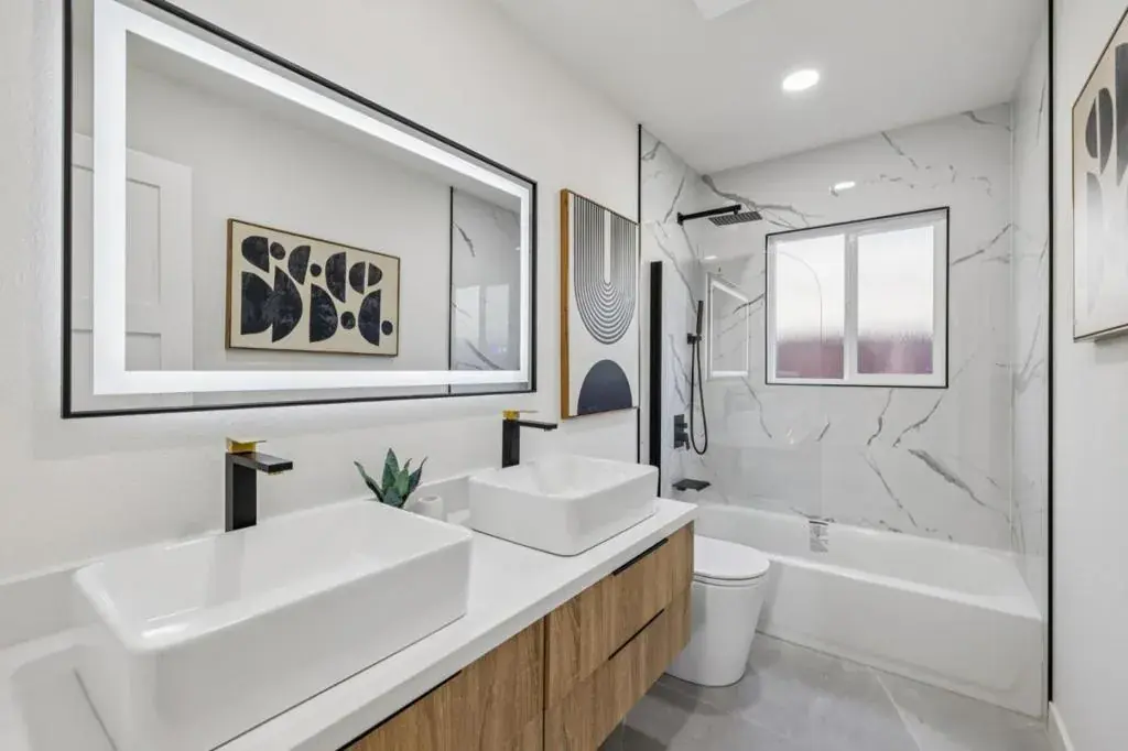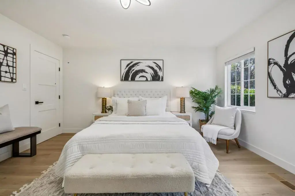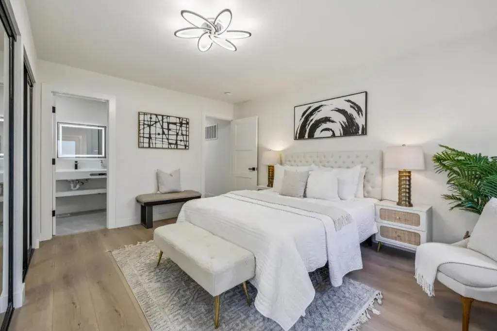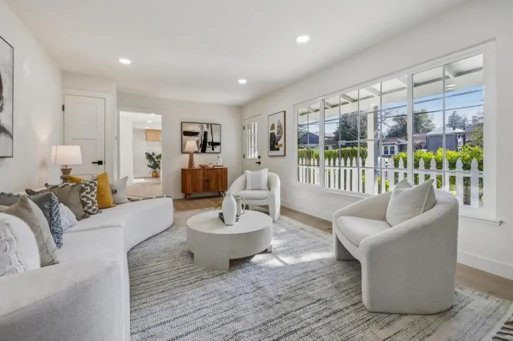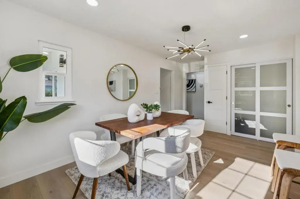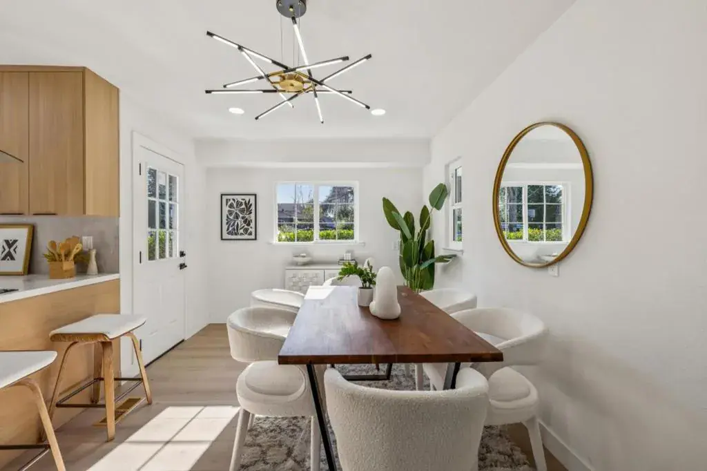 * * * All the Remodeling Done with the City Permits! 2nd Full Bathroom Added and Open Layout Reconfiged with City Permit! The Lowest priced updated SFH in the entire Mountain View! * * * Welcome to this elegantly remodeled gem located in the heart of Mountain View. You will love its contemporary style and sleek designer finishes. The open layout flows seamlessly into the living and dining areas. The stunning gourmet kitchen features new high-end customized frameless cabinetry, quartz countertops, new stainless appliances and beautiful peninsula. The designed bathrooms feature stylish floating vanities, modern tiles, smart toilets, LED mirrors and frameless shower doors. This gorgeous home also offers new floors, new lights, new electrical panel, new landscaping and many more design touches. The two generously sized bedrooms filled with natural light, including a spacious primary suite with a contemporary master bathroom. The splendid yard is perfect for relaxation and entertaining when staying at home. Ideally located on a quiet corner mere blocks to exceptional schools, parks, CalTrain, Castro Street and the downtown district. Don’t miss this rare opportunity to own a beautifully upgraded gem!