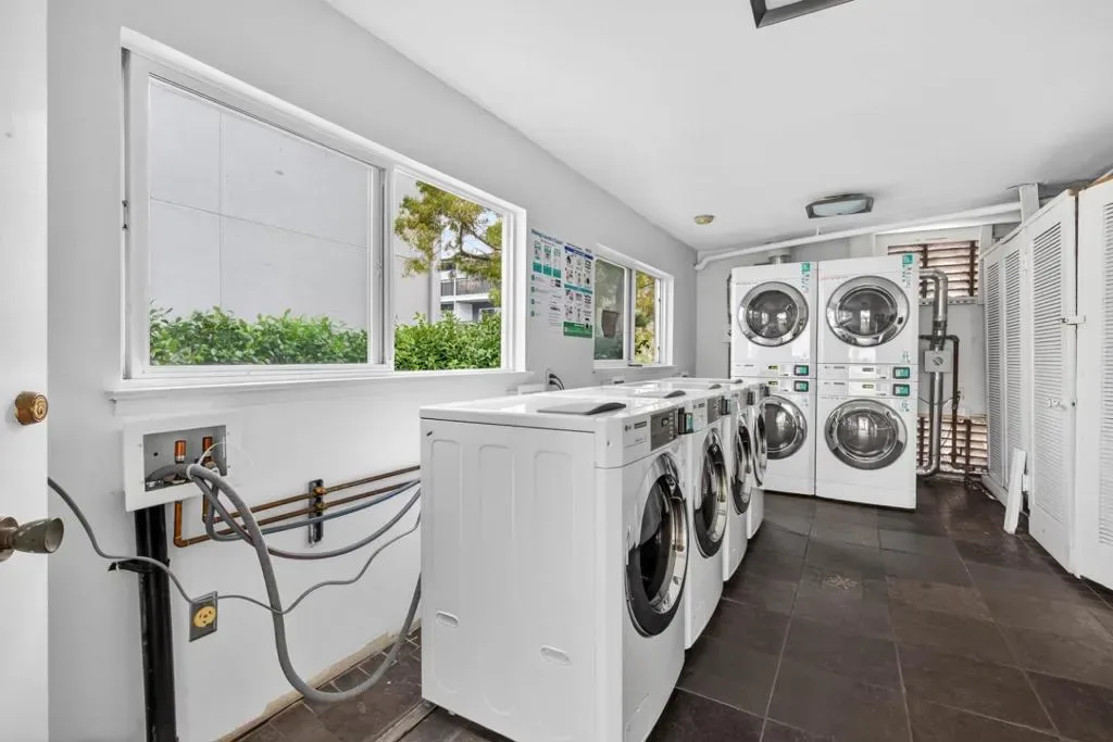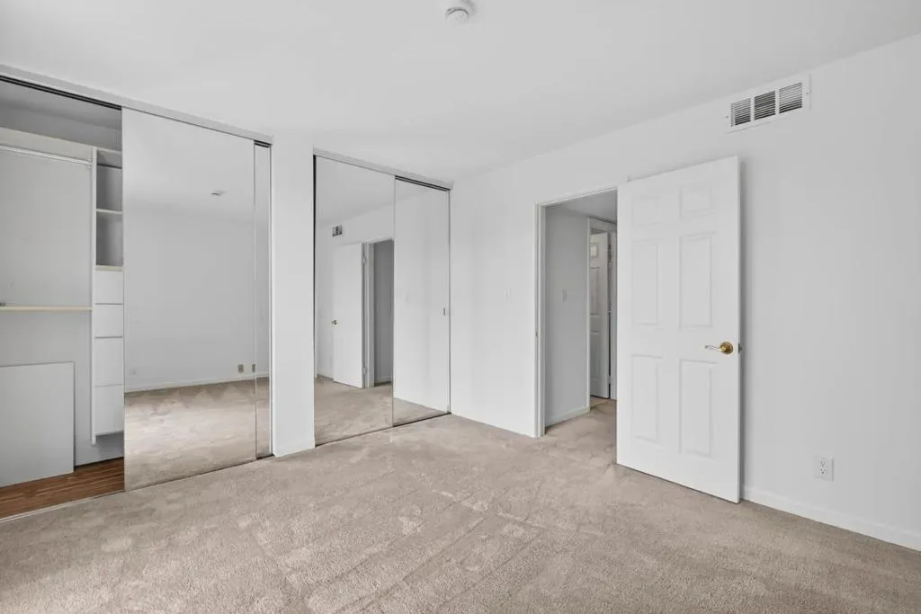 This 2-bedroom, 1-bath home offers 936 square feet of living space on a 781-square-foot lot. Short walk to CalTrain. The kitchen features granite countertops, an electric cooktop and oven, microwave, dishwasher, garbage disposal, refrigerator, and a wine refrigerator, providing a well-equipped area for meal preparation. Short walk to CalTrain. Also has bike storage. Flooring throughout includes a combination of tile in kitchen and carpet through out. Laundry facilities are available within the community. The home has central forced air gas heating and does not include cooling. There is a dining area but no separate family room. The has a carport covered parking space with a doble cabinet door for storage. It also benefits from community amenities including a pool. It is located within the Mountain View Whisman Elementary School District. Furnished photos are virtual staged.