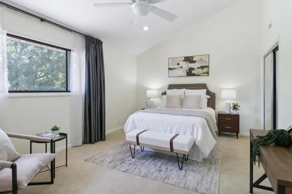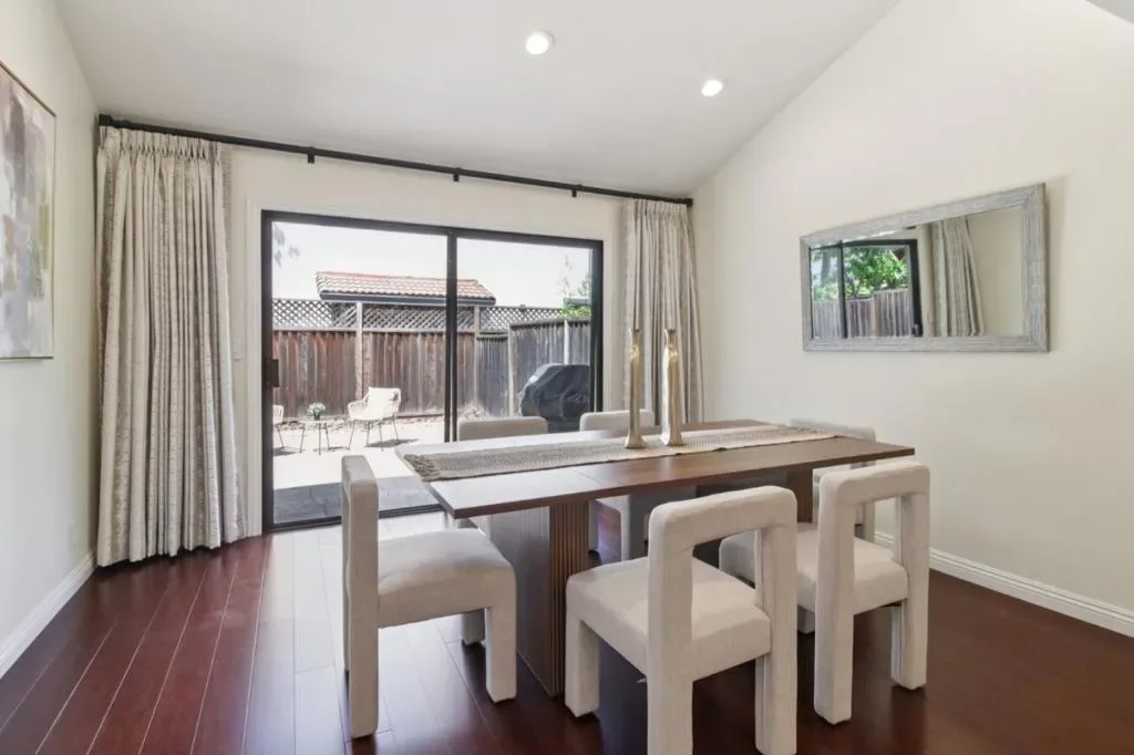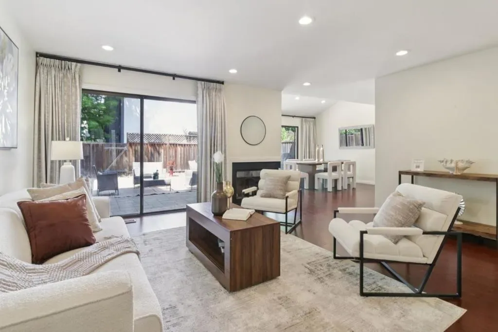 Welcome to this beautifully remodeled townhome that lives like a single-family residence – offering exceptional space, privacy, and comfort with the ease of low-maintenance living. Ideally situated in one of Mountain Views serene and sought-after neighborhoods, this home is also within the highly coveted Los Altos HS district. Enjoy a short stroll to vibrant Castro Street, with close proximity to Google headquarters, and convenient access to Highways 101, 85, and public transportation. Designed for both everyday living and entertaining, the main level showcases a warm and inviting living room with a fireplace, a formal dining area, and a beautifully updated gourmet kitchen – all filled with natural light. Two sliding glass doors create seamless indoor-outdoor flow, opening to a spacious private backyard retreat thats perfect for relaxing or hosting. A rare direct-access two-car garage adds convenience and a true single-family feel. Upstairs, the expansive primary suite features soaring vaulted ceilings, generous closet space, and a remodeled en-suite bath. Two additional well-sized bedrooms share an updated full bathroom. Thoughtfully upgraded throughout, this home offers a truly move-in-ready experience. A rare opportunity to enjoy refined living in the heart of Silicon Valley.