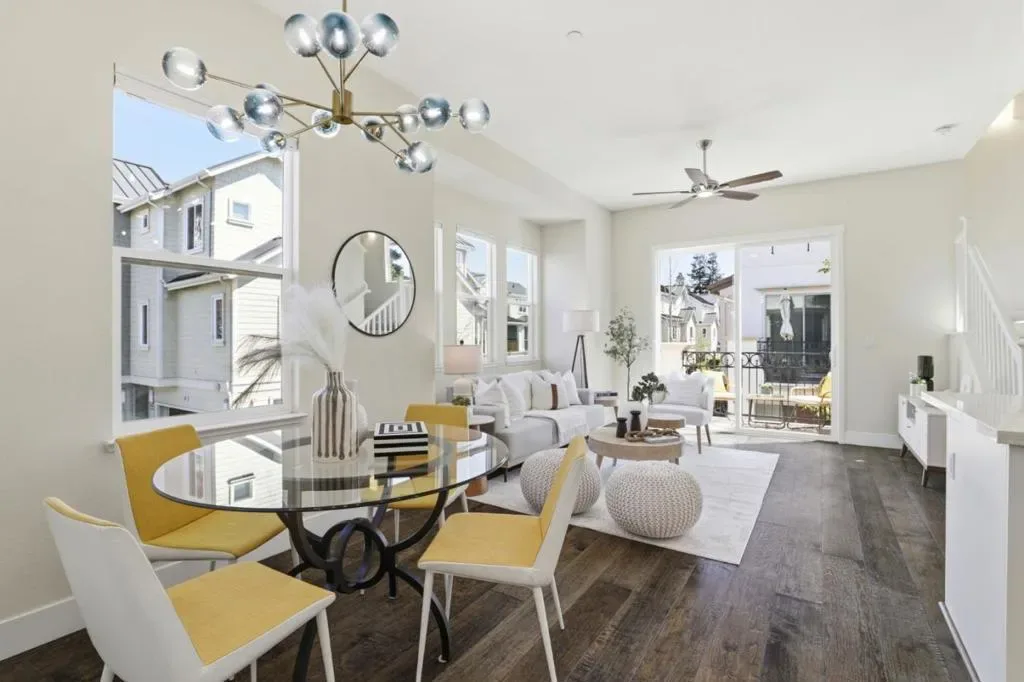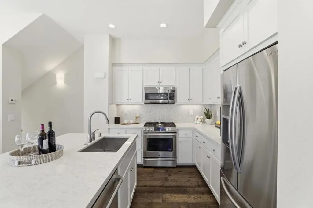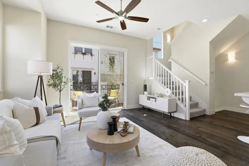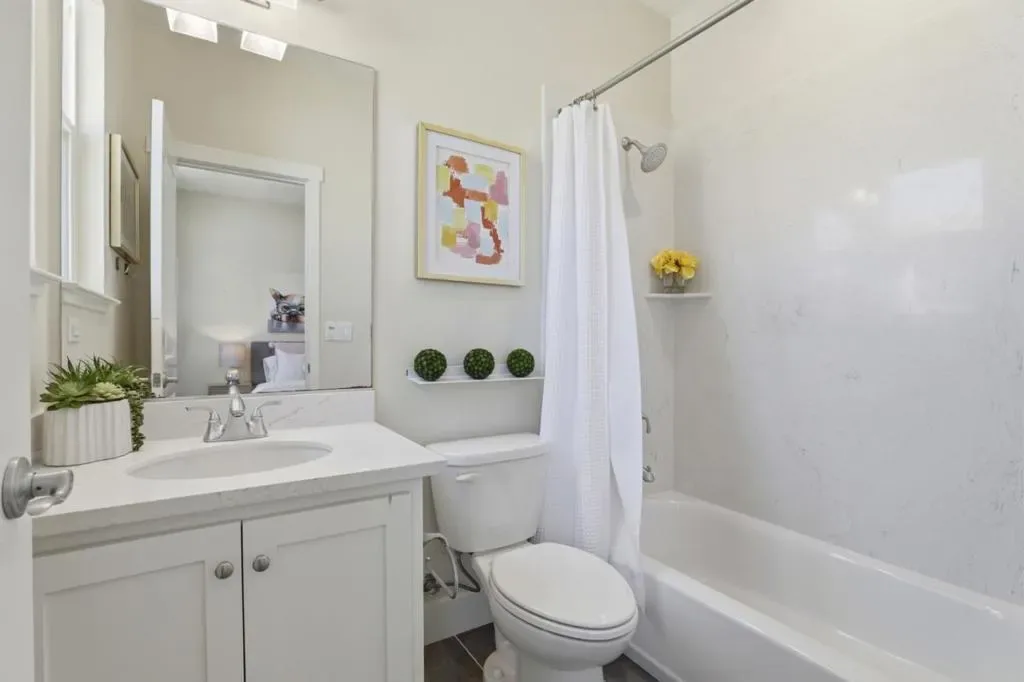 Rare peaceful corner unit in a picturesque, tree-lined neighborhood in the heart of Silicon Valley, this stunning 3-bedroom, 3-bathroom townhome combines modern living with an unbeatable location. The main level has an open floor plan with natural light designed for comfort and entertainment. The spacious living room offers balcony access and integrated into a gourmet kitchen with high ceiling. The chef’s favorite kitchen comes with quartz countertops, high-end stainless steel appliances, and ample workspace. A versatile bedroom and full bathroom on this level provide an excellent option for home office or guest suite. The luxurious primary suite features a generous walk-in closet and a beautifully designed bathroom with a double-sink vanity, creating a private retreat. Additional highlights include a large 2-car garage, an in-unit washer/dryer, and unparalleled convenience. Close to major employers such as Google, Meta, Apple, etc. Walk or bike to groceries, shops, parks, hiking trails. Downtown Mountain View is just minutes away, and easy access to highways 101 and 85. Zoned for the highly acclaimed Los Altos schools!!