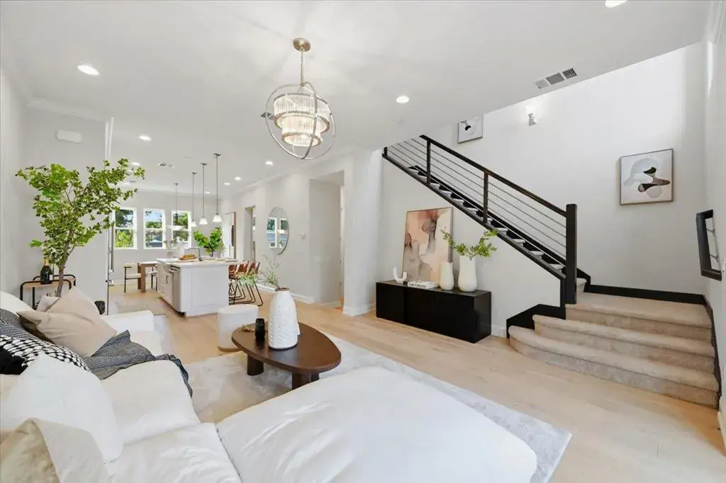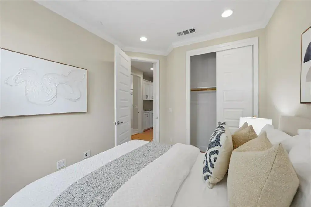 Nestled in the heart of Silicon Valley, this desirable Mountain View PUD townhome offers an ideal blend of comfort, style, and convenience. Situated on a premium lot, the open-concept home features 4 bedrooms, 3.5 bathrooms, and approximately 1,907 sq ft of bright, thoughtfully designed living space filled with natural light. A private first-floor bedroom suite is ideal for guests or a home office. The second level showcases a spacious living and dining area centered around a gourmet kitchen with high-end Cafe appliances, including a Cafe Monogram range, hood, dishwasher, and refrigerator, complemented by an updated island countertop and full-height backsplash. Hardwood flooring runs throughout, along with upgraded crown molding. The top floor offers a luxurious primary suite with a walk-in closet, dual vanities, and wet/dry bath separation, plus two additional bedrooms and an upgraded bathroom. Additional highlights include central HVAC, a tankless water heater, and a newly epoxied two-car garage. Conveniently located near major tech campuses, highways, and award-winning Mountain View-Los Altos schools, including Los Altos High.