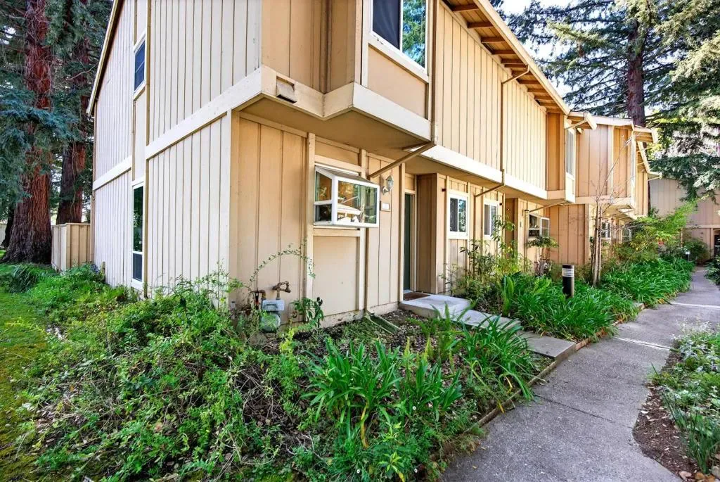 Towering two-story end-unit surrounded by majestic redwood trees, ideally located within a Top-Rated school district and less than two miles from vibrant Downtown Mountain View, known for its lively farmers market, acclaimed dining, shopping, plus convenient Caltrain and light rail access. Inside, the home features laminate flooring, high vaulted ceilings on the second story, recessed lighting, and central heat/AC. The well-appointed kitchen offers stainless steel appliances, granite countertops and a charming bay window that fills the space with natural light. Each bedroom includes its own en-suite bathroom, while the primary suite boasts a spacious walk-in closet with custom organizer and a relaxing sunny balcony. Additional highlights include a generous one-car garage, bonus sunroom leading to a private patio perfect for entertaining or relaxing, and access to a serene community pool. Ideally situated near major tech campuses including Apple, Google and LinkedIn, with easy access to Highways 85, 101, 237 and central expressway, this home perfectly blends lifestyle, convenience and location. Do not miss your chance to own this towering treasure. It will go FAST!