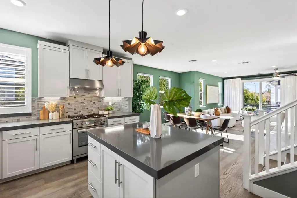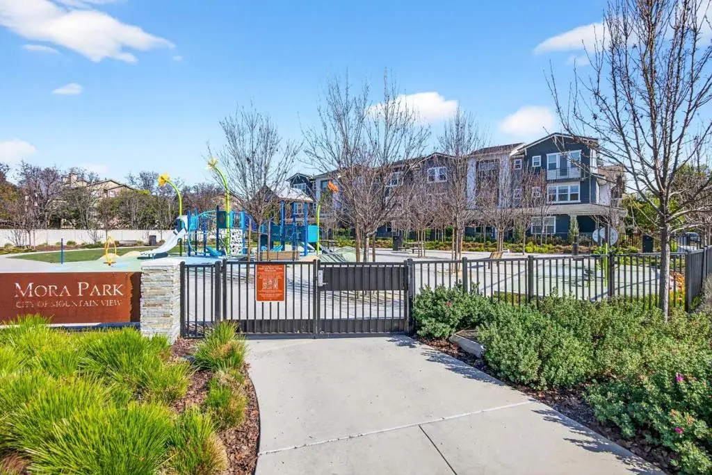 Towering three-story end-unit nestled in a serene community, just steps from top-rated schools, parks and the vibrant San Antonio shopping and entertainment district. A few miles away, downtown Mountain View connects you to Caltrain/Light Rail and a weekly farmers market. Inside, high ceilings, recessed lighting, rich wood flooring and abundant natural light streaming through dual-pane windows create a relaxing ambiance. The open floor plan seamlessly connects the living and dining areas. Central heat and AC ensure year-round comfort. The gourmet kitchen is a chefs dream, boasting high-end stainless steel appliances, quartz countertops/island and vast cabinetry. All bedrooms are generously sized and include their own full bath, with the primary suite featuring a massive walk-in closet en-suite bathroom with dual sinks and stall shower. Additional highlights include a first level private in-law suite with a full en-suite bathroom, a two-car garage, utility/laundry room with washer/dryer, a large wraparound patio and a sunny balcony. Perfectly located near tech giants such as Google, Meta, LinkedIn, Apple, and top dining/shopping, with easy access to Highways 85, 101, 237, and Central Expressway. Do not miss your chance to own this luxurious end-unit. It will go FAST!