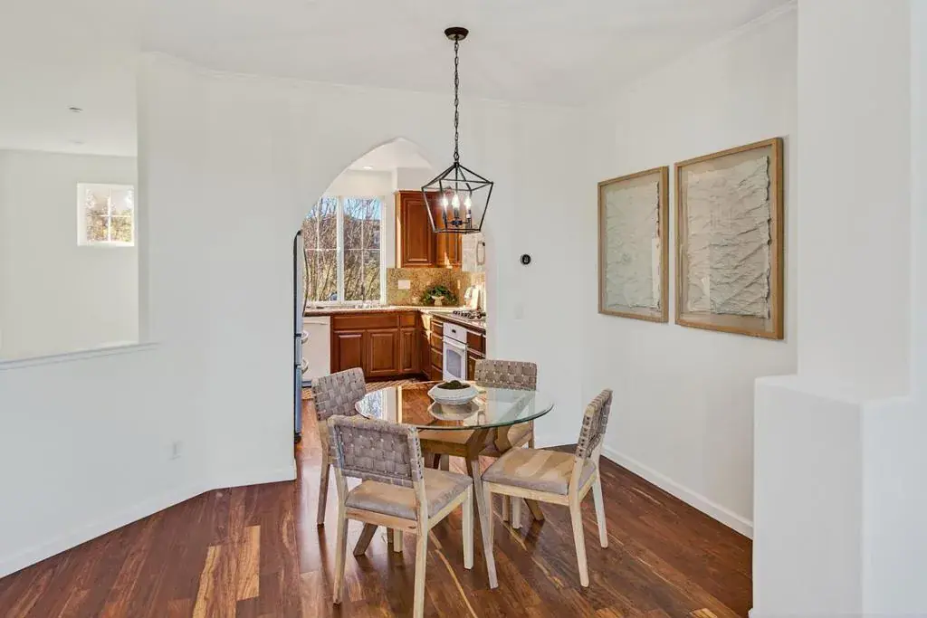 Well-positioned within the Ryland Towne Court community, this stylish three-bedroom, three-bath townhome offers exceptional privacy with no neighbors directly in front or behind, only one shared wall, and views of the greenbelt, playground, and Western Hills. A gated front courtyard and covered entry lead to a tiled foyer with high ceilings, while the lower level features a flexible bedroom or office, full bath, and laundry closet with built-in cabinetry. Upstairs, the light-filled main living areas feature wood floors, a spacious living room with a wall of windows, and a glass door opening to a rear-facing balcony. The kitchen is well-appointed with granite countertops, full-height backsplashes, rich wood cabinetry, tall pantry storage, and quality appliances, and flows seamlessly into the open dining area. The primary suite enjoys park views, a walk-in closet, and an en suite bath with marble finishes and a separate commode room. Enjoy beautifully maintained grounds with a large lawn area just outside your front door, playground, picnic space, car wash area, and private gated access to nearby Rengstorff Park with its new swim complex and Magical Bridge playground. Steps from San Antonio Center, Caltrain, and close to downtown Mountain View, commute routes, and tech employers.