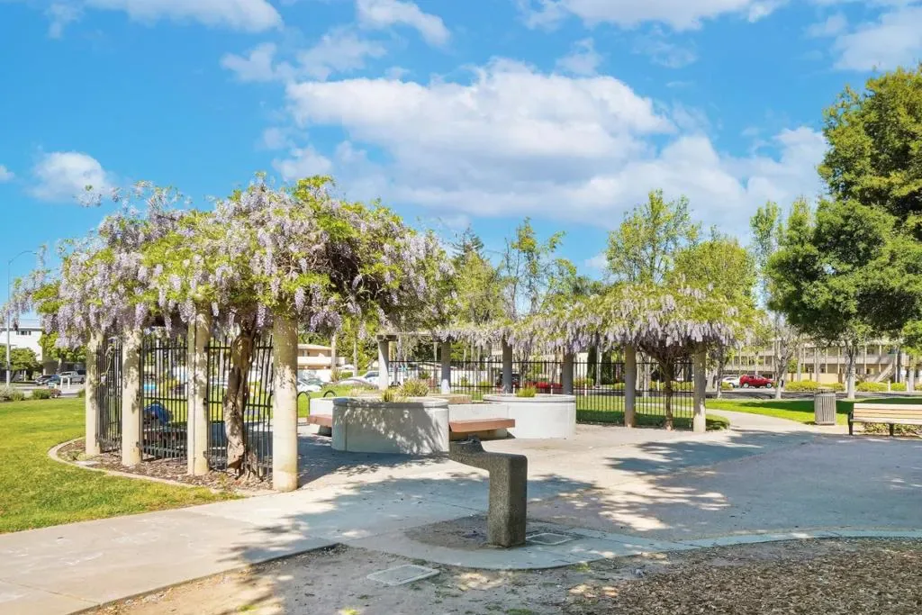 Step into this updated 3 bd/2.5 ba end-unit townhome nestled in the Oaktree Commons community. This 2-story gem offers privacy, modern amenities, and unbeatable location. The main floor invites you to relax/entertain with a smart layout. Cozy up by the fireplace in the living room, host dinners, or unwind in the back den/family room, which opens to a private fenced yard. French doors off the kitchen open to a private patio for morning tea overlooking Klein Park. Upstairs, three spacious bedrooms include a primary suite with vaulted ceilings, WIC, and a bathroom complete with soaking tub, sep shower, and a vanity/dressing area. Additional amenities include upstairs laundry hookups, central HVAC, and an attached 2-car garage with eV charger (NEMA 14-50). This move-in ready home checks all the boxes: energy-efficient dual-pane windows, LED lighting, and refreshed kitchen/baths. Easy access to Klein Park, Trader Joes, Walmart, dining, cinemas, gyms, and Caltrain plus Free MV Shuttle. Commuters will love the prox. to Google, LinkedIn, Intuit, etc. with fast connections to Highways 101, 85, and Central Expwy. With only one shared wall, ample private outdoor space, and top-rated Los Altos High School, don’t miss your chance to make this home yours!