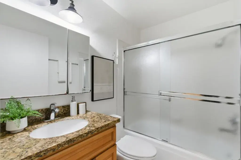 Upper unit condo ready for you to call home! Welcome to the Saint Francis Condominiums, centrally located in the heart of Mountain View. Recently upgraded with crown molding, recessed lights, granite counters and more! Open and bright Living Room with access to the dining room and spanning sliders that lead to the cozy balcony, perfect for a morning coffee or evening meal. The Kitchen offers granite counters, stainless steel appliances and ample cabinetry. Owners bedroom is located at the end of the hall w/ added privacy, spacious mirrored closet, and access to the balcony. Spacious second bedroom with ample closet space and spanning slider that also provides access to the balcony. Full bathroom located in the hallway w/ shower tub combo. Additionally, an in unit washer/dryer laundry area. Community features loads of luscious landscaping, community pool / spa area, and open greenbelt grass area, perfect for a picnic on a sunny day. Short bike ride to all that Mountain View has to offer including bike trains, Shoreline Park and Downtown Mountain View with loads of dining, coffee, shops, and entertainment. Easy access to CalTrain making getting anywhere in the Bay Area a breeze. Near top Silicon Valley companies such as Google, Apple, NVidia, Amazon, Meta and more! Don’t miss out!