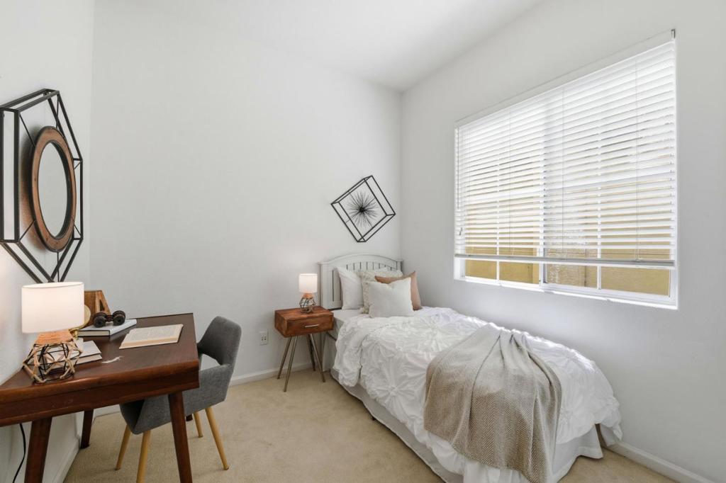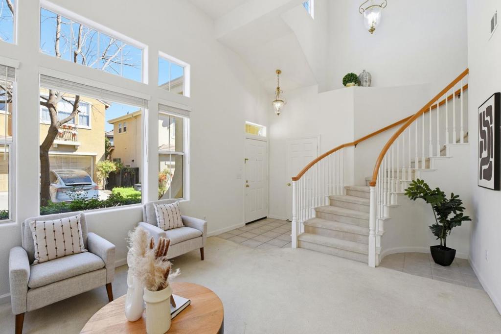 Welcome to this spacious 4-bedroom, 3-bath single-family home in the highly desirable Whisman Station community. Featuring soaring ceilings, oversized dual-pane windows, and a light-filled open floorplan, this home offers an inviting layout with great everyday functionality. The main living areas flow seamlessly, with the kitchen opening to the family room with fireplace and direct access to the backyard. A highly sought-after feature is the bedroom and full bathroom on the ground floor, ideal for guests, extended family, in-law quarters, or a private home office. Upstairs, the primary suite offers a comfortable retreat with a large en-suite bath, dual-sink vanity, soaking tub, separate shower, and walk-in closet. Recent exterior improvements include fresh exterior paint, a replaced garage door, and a new garage door opener. The home presents a wonderful opportunity for buyers to add their own personal touches and make it their own. HOA dues of $257/month include access to the clubhouse, pool, spa, and playground. Prime location near parks, Castro Street dining, Caltrain, VTA, and major tech campuses including Google, LinkedIn, and Microsoft. Conveniently located near Magnolia Park and Vargas Elementary, with easy bike access to transit.
