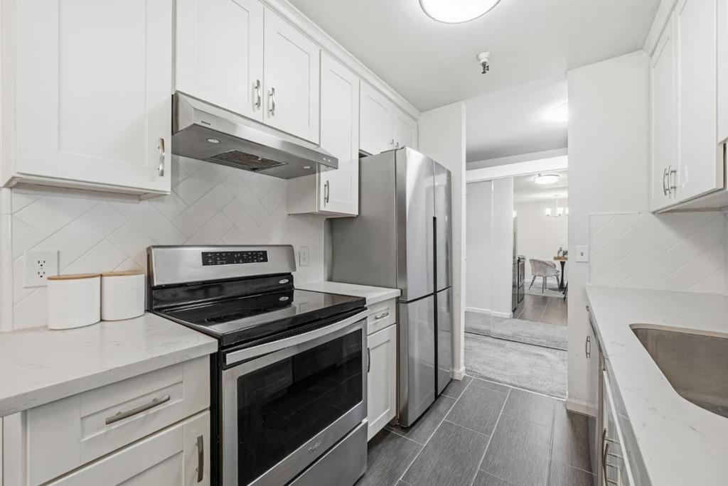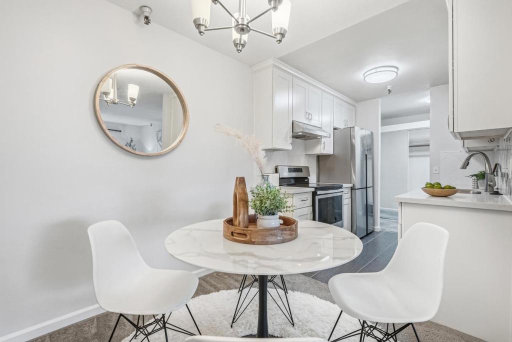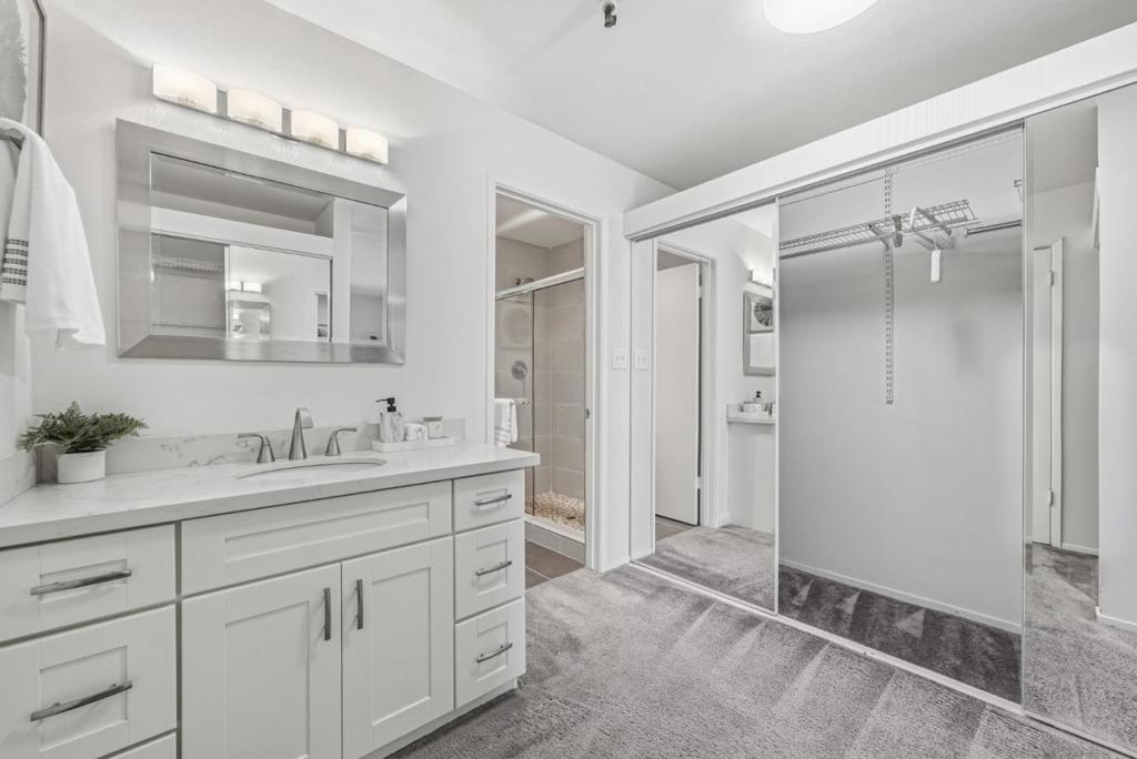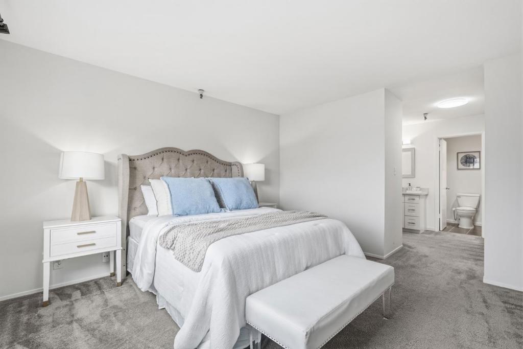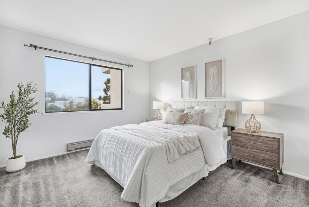 Beautifully remodeled and stylish condo in one of Mountain Views most convenient and sought-after locations. Sleek and contemporary, this light-filled home features an open floor plan with a spacious living room that seamlessly extends to a private balcony, creating a bright and inviting indoor-outdoor living experience with gorgeous sunset views. The stunning updated kitchen offers stone countertops, a full-height offset subway tile backsplash, large-format tile flooring, and stainless-steel appliances. Spacious, sun-drenched bedrooms provide oversized closets, and both bathrooms have been tastefully renovated with modern large-format tiles and elegant stone counters. New light fixtures an double-pane windows ensure excellent sound and temperature insulation, while in-unit laundry and ample storage add everyday convenience. The secure community includes underground parking, a sparkling pool, inviting clubhouse, and is ideally located near San Antonio Village, Whole Foods, shops, restaurants, public transportation, major commute routes, and award-winning Los Altos schools.
