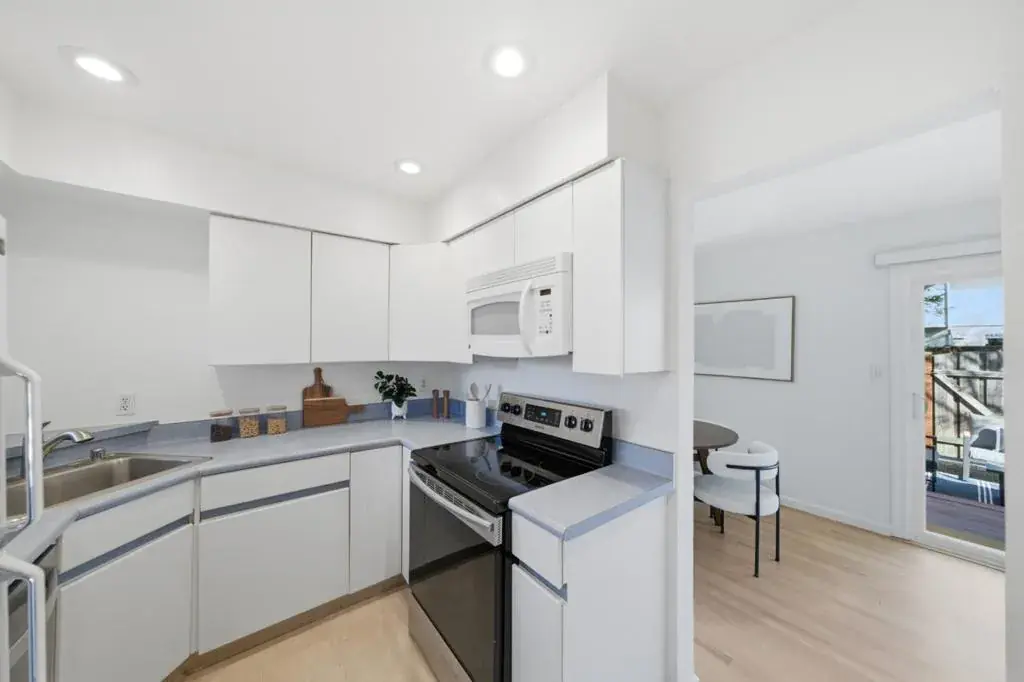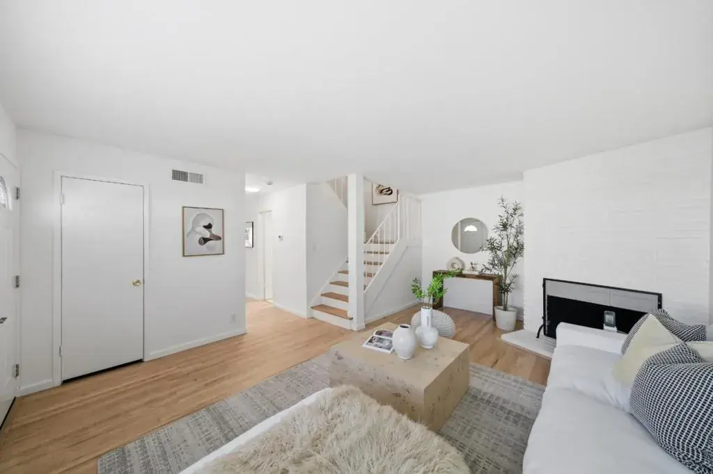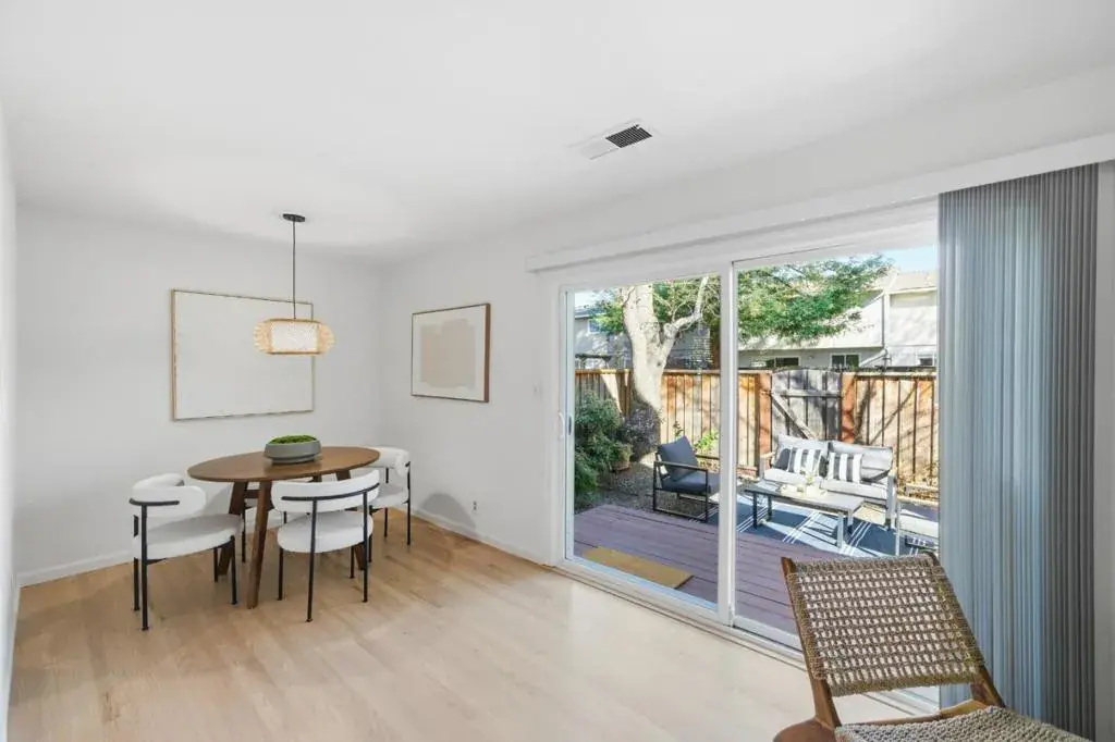Come home to this sought-after end unit! This welcoming two-story townhome offers the comfort and privacy of a personal retreat, bathed in natural light & an effortless sense of calm from the moment you step inside. Newly refinished hardwood floors extend throughout the home, capturing sunlight from every direction & guiding you naturally into the inviting living spaces. The living room with fireplace creates a cozy gathering place for quiet evenings & relaxed conversations. Family & dining areas open seamlessly to a sunny rear patio, where mornings begin with coffee & evenings end with al fresco dining. This indoor-outdoor connection makes everyday living feel special & entertaining, effortless. Upstairs, the spacious ensuite bedroom offers a true sanctuary, complemented by two additional generously sized bedrooms perfect for family, guests, or a home office. A full-size laundry area adds everyday convenience, while the attached two-car garage provides rare practicality and storage. Set within the highly sought-after Los Altos High School district & just minutes from downtown Mountain View, the Googleplex, & major commuter routes, this home blends comfort, connection, & location in a way that’s hard to find. It’s not just a place to live, it’s a place to truly feel at home.