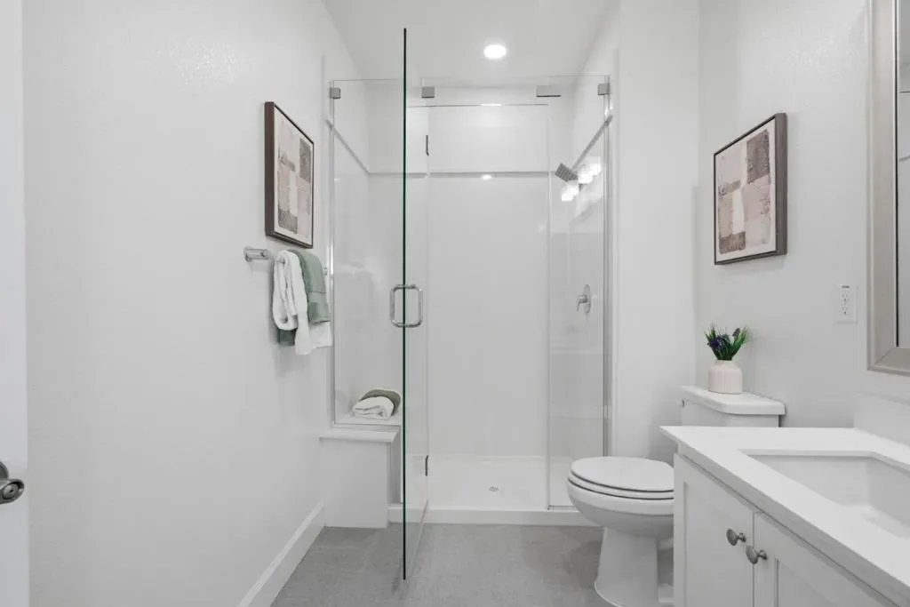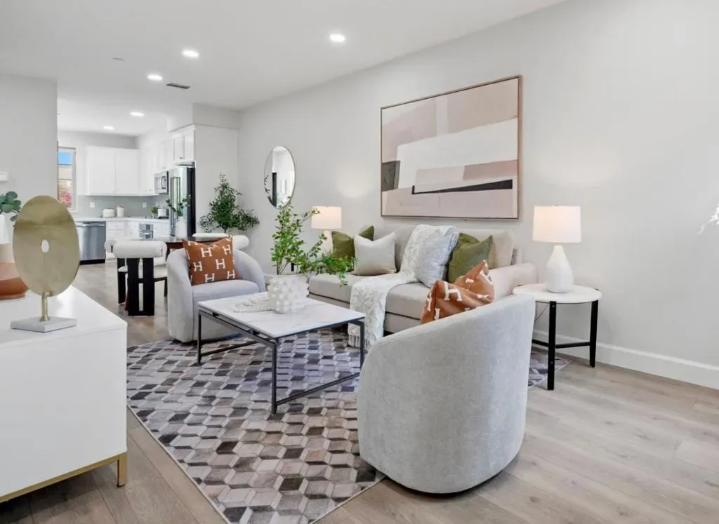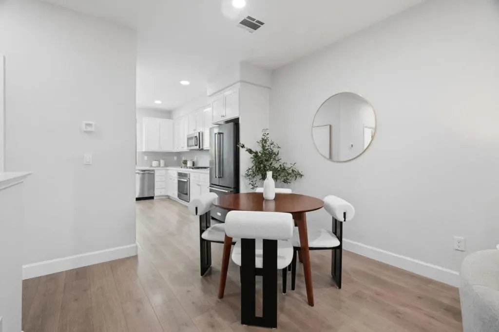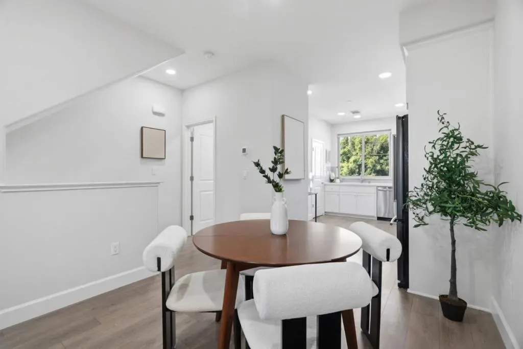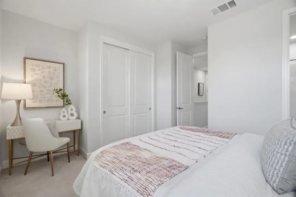 Built by Taylor Morrison in 2018, tucked away in the back of the community, this modern townhouse features 2 bedroom suites each with en suite bath plus a half bath. Open-concept living, dining & kitchen with recessed lights plus French door to balcony for al fresco enjoyment. Open & spacious kitchen features refinished cabinetry, quartz countertops w/ linear tile backsplashes and a huge walk-in pantry. Stainless steel appliances include a GE gas cooktop, microwave, oven, dishwasher, KitchenAid refrigerator. Primary bedroom suite has a full wall of closets and an en suite bath with furniture-style dual-sink vanity plus a large frameless-glass shower with bench seating. Second bedroom suite has en suite bath with single-sink vanity and tub with overhead shower. Adding to the appeal: dual paned windows, central air conditioning, inside laundry with washer and dryer; tankless water heater; attached 2-car tandem garage with storage space, EV outlet, and direct access to the home; Ring video doorbell; ample guest parking. Located at one end of a central community park with playground, BBQ & picnic tables. Minutes to Silicon Valley tech companies, including Google, Meta, NASA, Amazon and vibrant Castro Street, down the street from Stevens Creek Trail; easy access to 101, 85, 237.