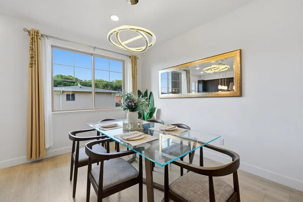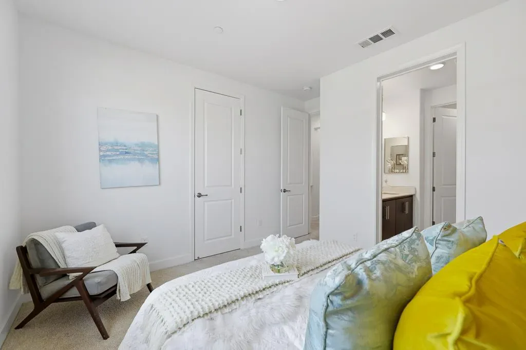 Bright and spacious 4bd/3.5ba townhome with high 9-ft ceilings and large windows filling the home with natural light all day. A unique feature its location next to the park, with generous distance from neighbor homes. The ground level features a private en-suite bedroom perfect for guests, in-laws, or a home office along with a side-by-side two-car garage. On the main level, enjoy an airy open-concept living area with higher ceilings, wood floors, and a gourmet kitchen equipped with a center island, quartz countertops, and stainless steel appliances. A powder room and sunlit balcony further enhance comfort and convenience. Large windows invite abundant natural light and offer a pleasant green belt view, creating a serene and inviting atmosphere. Upstairs offers a bright primary suite with walk-in closet, two additional bedrooms, and a laundry area. Owned by the original owners, the home is fresh like new with engineered wood floors, dual zone HVAC, and an attached 2-car garage. Minutes from Google, Microsoft, NASA, and other major Silicon Valley campuses. With quick access to Highways 101, 85, and 237, Caltrain, and Light Rail, plus convenient access to Stevens Creek Trail, this home offers the ideal blend of comfort, convenience, and Silicon Valley living. Must See!!!