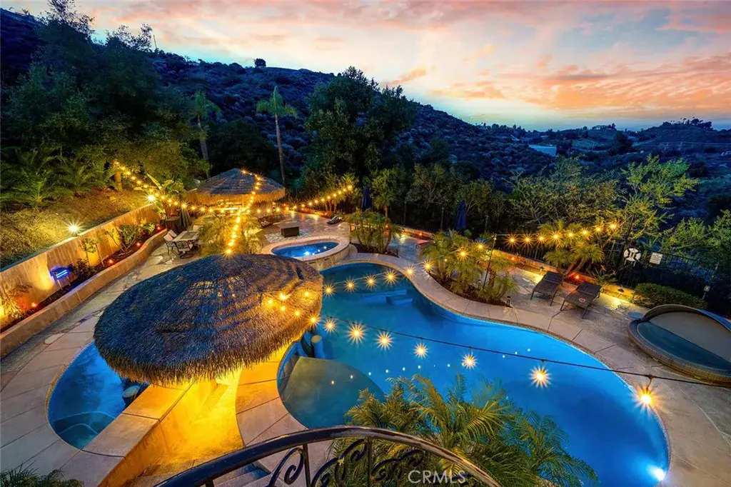 PRIVACY, LUXURY & ENERGY EFFICIENCY ON 10 ACRES WITH NO HOA! ABSOLUTELY TURNKEY RESORT-STYLE ESTATE WITH AMAZING VIEWS ON THE SANTA ROSA PLATEAU! $100s of thousands invested in new solar, massive battery-back up & whole-house generator, providing security, connectivity & controlled cost of living. Extreme privacy from the moment you enter this one-of-a-kind custom estate located in a convenient, tranquil location adjacent to La Cresta, in a small carved-out area with NO HOA. The custom iron entry gate, peaceful waterfall, long driveway, and extensive landscaping greet you, leading you to the large, beautifully finished 4-car detached garage, dramatic Mediterranean-inspired estate with a pool and an entertainment backyard that you must see to believe! The acreage adjacent to the home has a separate driveway, stairs, walls, fruit orchard, and is ready for whatever you want to build. Inside the home, find 8-ft solid wood doors, hand-troweled walls, Fiber Optic Internet Service (FIOS) wifi, surround sound, security system, custom shutters, and opening to the family room, the epic chefs’ kitchen with Viking appliances, 4 ovens, cooktop with griddle & pot filler, 2 sinks, 2 dishwashers, large eat-in island and adjacent well-equipped walk-in butler’s pantry. The Primary Suite and 2 additional ensuite bedrooms PLUS OFFICE are downstairs, with 2 additional ensuite bedrooms and large viewing deck upstairs. The backyard amenities include pool with ‘Lazy River’, 11 swim-up seats, sunken bar, 3 fridges, ice maker, dining counters, 2 TVs, sink, 52” BBQ, palapa, horse-shoe pit and city-lights & Nature Reserve views. The interior/exterior audio system tops off the resort experience! Just bring your toothbrush! THIS CLOSE-TO-TOWN ESTATE IS TURNKEY LUXURY! *****Discover the Santa Rosa Plateau Lifestyle…5-acre minimum parcels (10-acre minimum. in SR West), just minutes to schools, restaurants, hospitals, grocery stores, 15 Fwy & Temecula Wine Country. Enjoy this peaceful ranch community w/no commercial businesses, robust social activities, miles of private community trails & 1000s of acres of Ecological Reserve…All less than 1.5 hours from LA, SD, OC, Palm Springs & Big Bear. Discover the country, yet convenient, lifestyle of La Cresta, Tenaja & the Communities of the Santa Rosa Plateau!