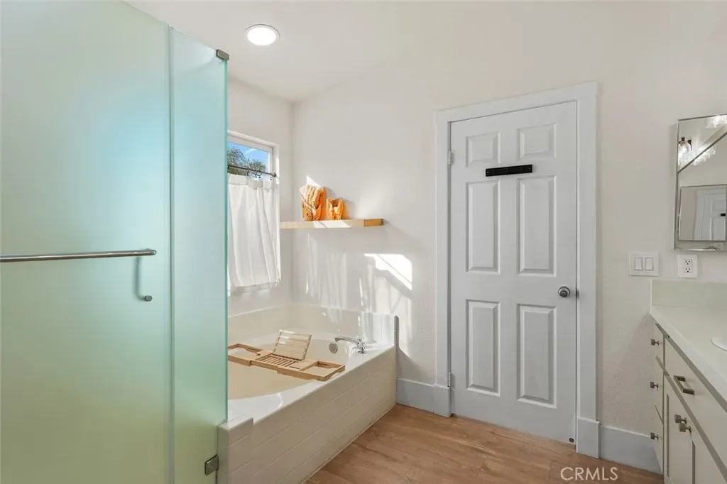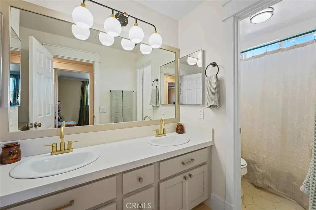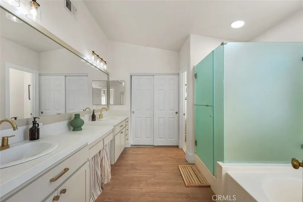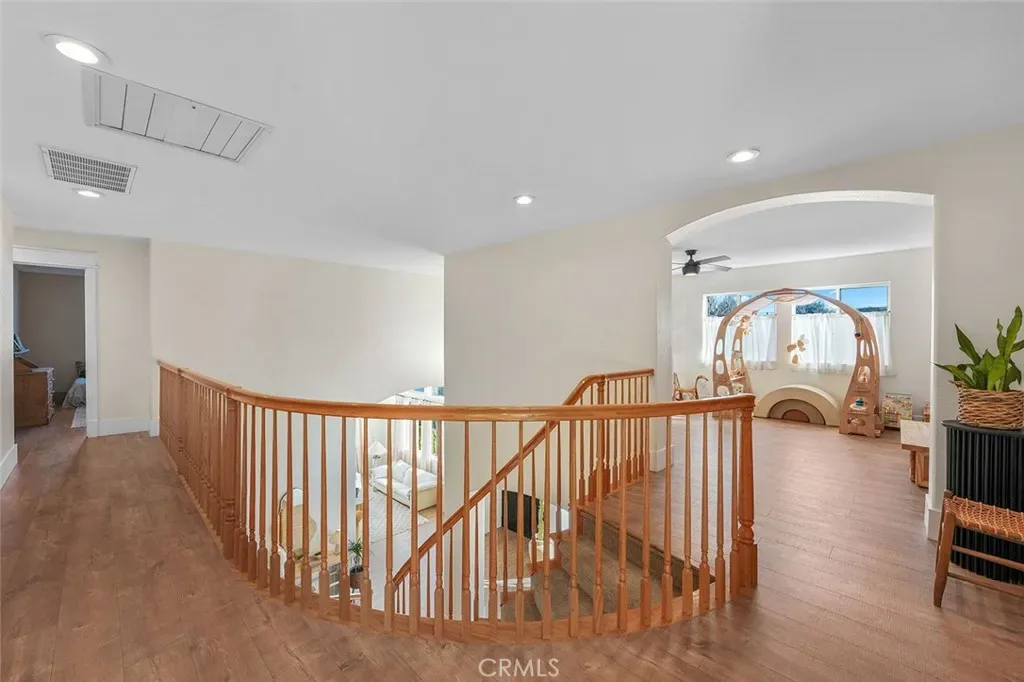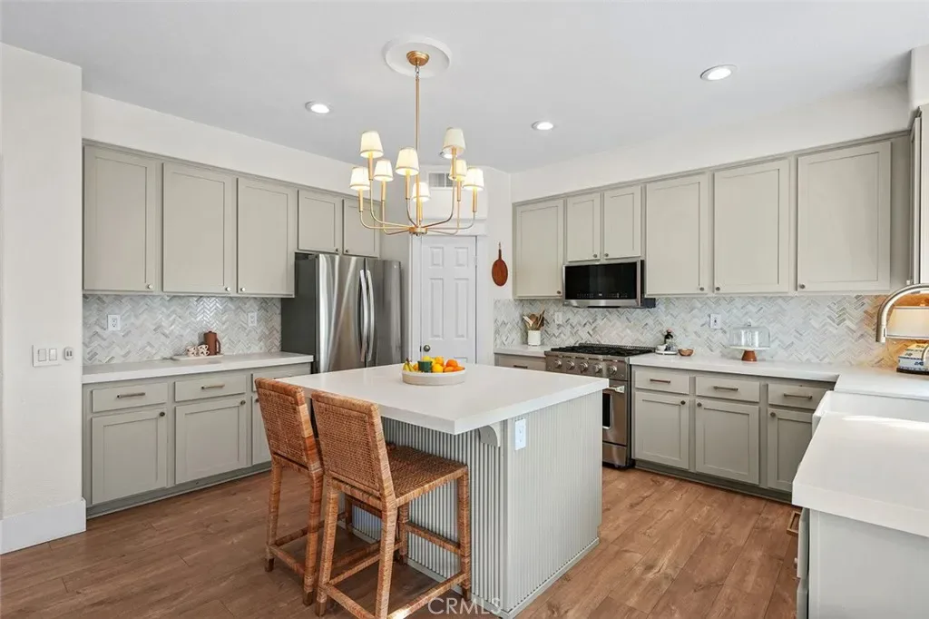 Highly upgraded pool home is priced to sell! This stunning home has been thoroughly updated inside and out and features a massive backyard with a brand-new sparkling pool and spa! And inside the home is pure eye candy, boasting new Quartz countertops throughout, luxury vinyl plank flooring, stainless steel appliances, sink fixtures, hardware, custom lighting, newer windows, paint, A/C unit, whole house fan, and more! The modernized kitchen hits all the marks, with farm sink, gorgeous warm hue Quartz countertops, and designer touches such as the chevron backsplash and soft-bronze finished hardware. From there, the kitchen connects seamlessly to the breakfast area and family room with wood-burning fireplace, creating a cozy, but open main living space. Across the hall is an updated bathroom, a bedroom, a larger formal dining area, and a light-filled, open living room, all illuminated by custom, updated light fixtures that add to the ambiance throughout. Head up the impressive staircase to a spacious loft/bonus room, perfect for a kids’ playroom, media room, or easily converted fifth bedroom. The primary bedroom offers extra flex-space and built-in storage, suitable for a home office, gym, or media room. The primary bathroom features a large soaking tub, a separate shower, and a large walk-in closet. There are two more bedrooms and a bathroom upstairs, all tastefully updated. The backyard is a dream come true where you’ll get to enjoy the SoCal sun in your new pool and spa with top-of-the-line ozone filtering, a large Alumawood-covered patio for lounging and dining under the shade, a large and super useful Tuff Shed, custom outdoor lighting, water-efficient landscaping, and, to top it off, no rear neighbors, culminating in the perfect outdoor living space! The oversized three-car garage includes built-in storage, epoxy-coated floors, and a soft-water system. Come live your best life and