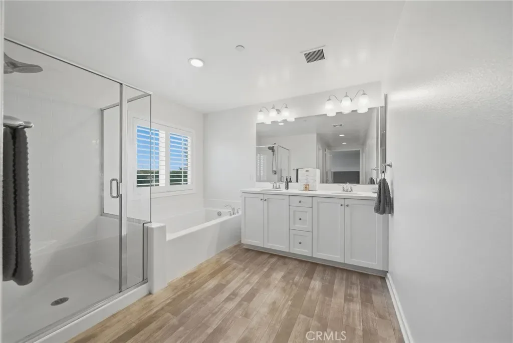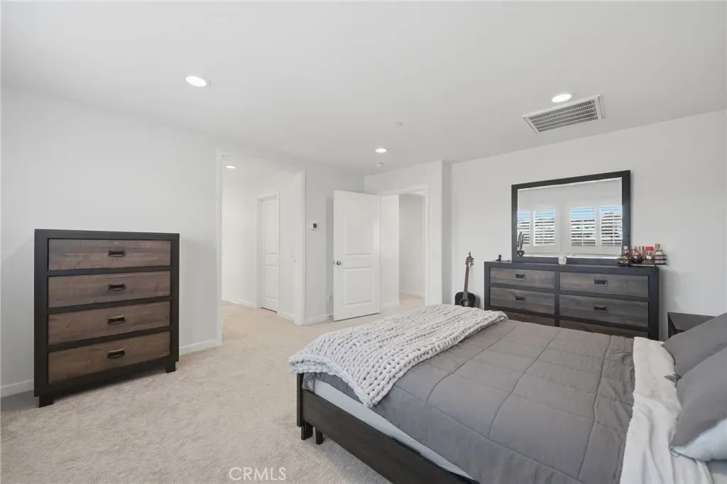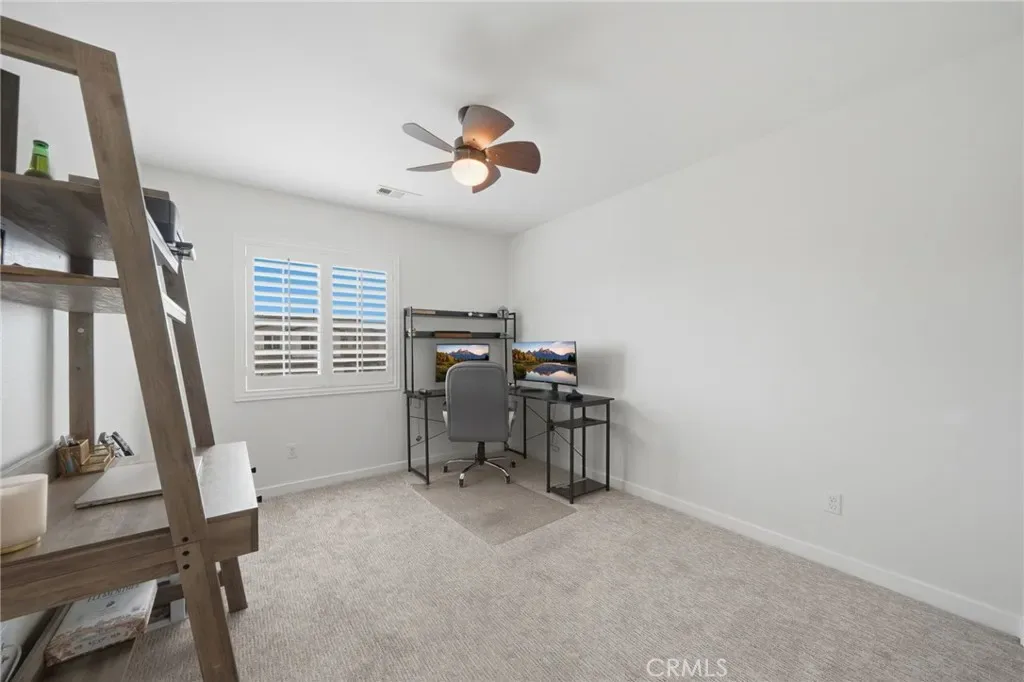 Throughout the home, meticulous attention to detail is evident with plantation shutters on every window, custom lighting fixtures, upgraded cabinetry in the guest bathroom, and ceiling fans for added comfort. Step outside to a beautifully landscaped, drought-tolerant backyard featuring artificial turf and an oversized stamped concrete patio, perfect for outdoor dining and entertaining. The front yard continues the home’s sustainable design with drought-friendly landscaping and an extended-width driveway providing additional parking. With its extensive list of upgrades, smart technology, and turnkey condition, this exceptional home offers the perfect blend of modern convenience, style, and energy efficiency. Conveniently located close to schools, shopping, services and major transportation. Move-in ready and designed for today’s lifestyle—welcome home