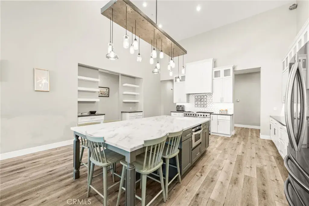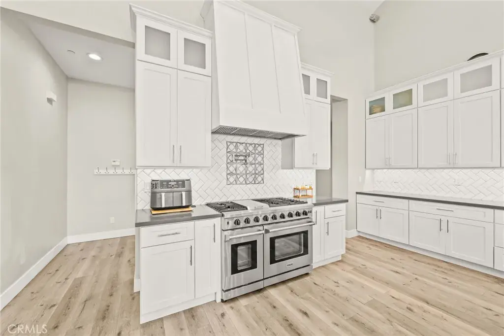 Luxury Farmhouse Living, Entertainer’s Pool, Wine Cellar & Mountain Views! Welcome to this stunning custom 4,000 SF 6 BR + Loft (used as 7th BR) / 4 BA home just west of historic Old Town Murrieta with gorgeous mountain & creek-bed views. Single-level living with large upstairs loft and seamless indoor-outdoor flow. Chef’s Kitchen features custom all wood soft-close cabinetry, 6-burner double oven range with 48” hood & pot filler, 5’x10’ Bianco Carrara marble island with wine fridge, microwave drawer, and storage galore. Enjoy your own wine tasting room with 11’x11’ wine cellar, perfect for entertaining.
