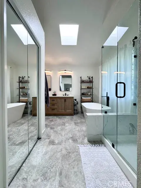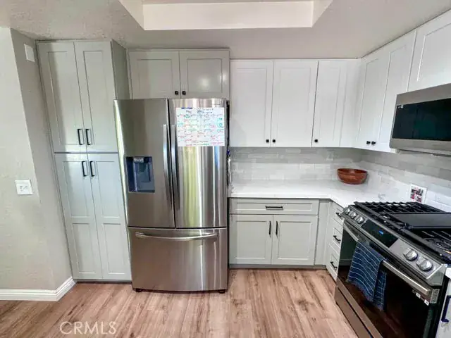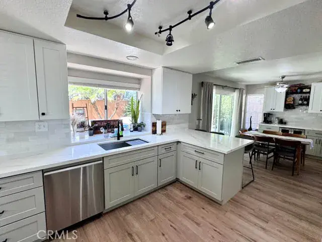 This beautiful home located in the heart of Murrieta features 4 bedrooms, 3 bathrooms, and a generous 2,222 square feet of living space, complete with Solar! Upon arrival, you’ll be greeted by lush landscaping and an inviting exterior, enhanced by a roomy driveway and a convenient 3 car garage. Coming inside, the home exudes a bright and airy ambiance throughout. Recently renovated, the main level showcases a modern aesthetic with light paint tones and stylish and durable vinyl flooring. On this floor, you’ll find the living room, formal dining area, family room, a bedroom, full bathroom, laundry room, and a stunning remodeled kitchen. The kitchen is stunning, featuring quartz countertops, sleek shaker-style cabinets, stainless steel appliances, and opens to an additional dining space with a built in bar area! Upstairs, you’ll discover the remaining bedrooms, including the primary suite retreat. This expansive sanctuary includes a separate area ideal for a workspace or cozy seating, as well as a private patio surrounded by greenery. The ensuite bathroom is a tranquil haven, boasting dual sinks, a freestanding tub, a striking walk-in shower, and a generously sized walk-in closet. The other bedrooms on this level offer ample space and comfort for family or guests, with a conveniently equipped hallway bathroom featuring dual sinks and a shower tub combination. Outside, the backyard offers a serene oasis like setting, providing ample space for various outdoor activities. Don’t miss the chance to see this remarkable home – schedule a showing today!