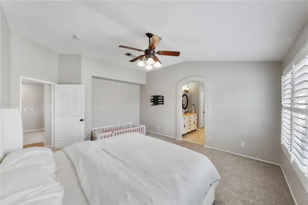 The backyard is an entertainer’s dream, featuring a sparkling pool and spa, an Alumawood patio cover with ceiling fans, ample patio space, a large side yard with gazebo, gated access, and a concrete pad ideal for RV parking. With no rear neighbors, you’ll enjoy enhanced privacy.