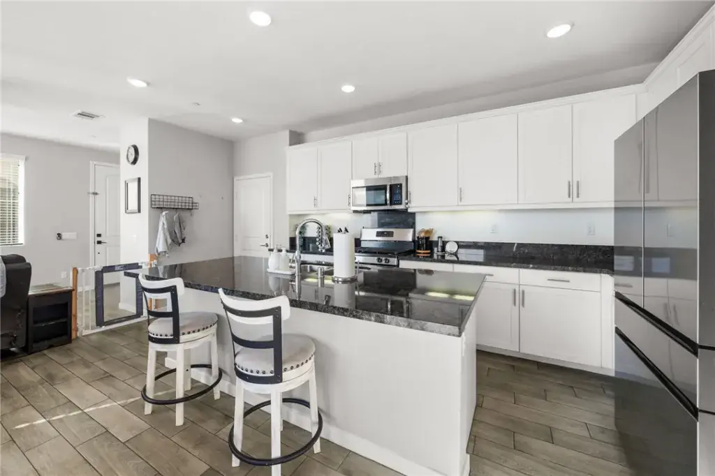 $10,000 CLOSING COST CREDIT AND PAID OFF SOLAR! Located in the highly sought after gated community of Vista Bella. This corner lot, two story townhome features an open floor plan with four bedrooms, two and half baths. The open floor concept features a gourmet kitchen with stainless steel appliances and granite countertops with a functional island that provides extra seating and countertop space. Wood-like tile flooring throughout the first floor. The primary suite features walk in closets and dual sink vanity. Recessed LED lighting throughout, All bedrooms upstairs along with individual laundry room. Solar panels are fully owned, whole house fan, tank-less water heater, water softener and custom window coverings throughout. Two car garage with additional spot right next to driveway and EV charging outlet. Low maintenance backyard with artificial grass and concrete. Whole exterior of home was painted in 2025. Low tax rate and no mello-roos! Located close to freeways for easy commuting access. Close to parks, community recreation, restaurants, Starbucks, Costco and Target.