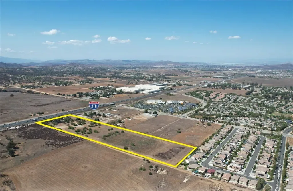 We are pleased to present the exclusive offering of this prime, 18.48-acre development opportunity in the City of Murrieta. The property is strategically located between the Loma Linda and Kaiser Permanente Medical Centers and has roughly 440 feet of frontage on Antelope Road which runs parallel to the I-215 freeway. Additionally, the property is about 850 feet south of Keller Road where a future offramp is planned. The site itself is primarily flat with some rolling areas and has existing improvements including a single-family home among other structures. Water and sewer service in the area are provided the Eastern Municipal Water District (see OM for maps). Please reach out with any interest or questions regarding this opportunity.