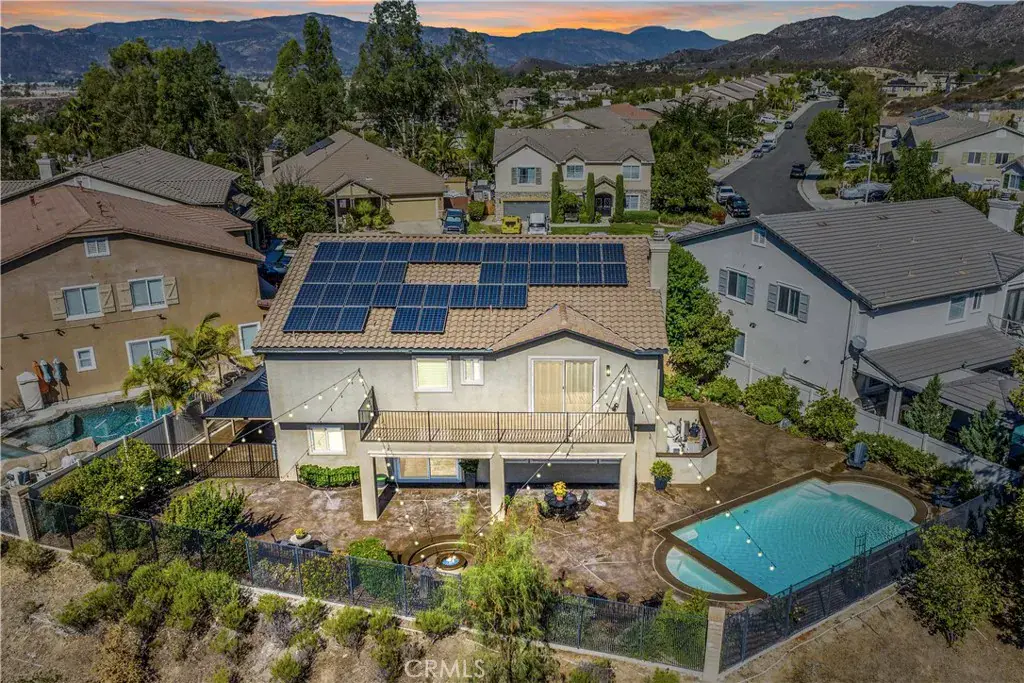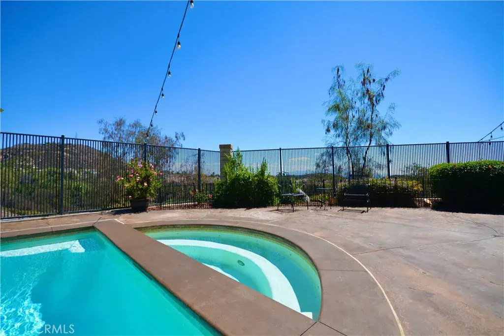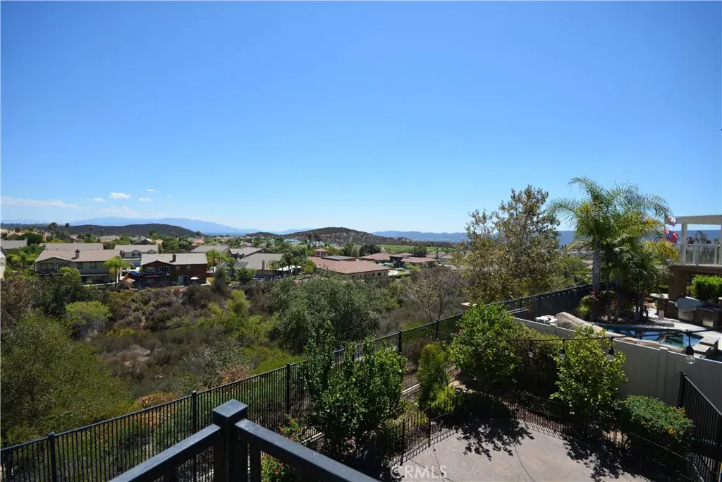 Stunning Panoramic views, views, views! Sparkling heated pool, main floor bedroom, quiet cul de sac location for privacy, No HOA dues, solar and low, low tax rate keep this home affordable! This highly upgraded executive home has all the features buyers request most. Enter through a covered front porch to the formal living room to see that the whole home has new hard wood flooring, new light fixtures, plantation shutters and more. Pass through the formal dining room to the spacious great room at the rear of the home which features a family room space with fireplace, eating area and impressive kitchen with granite counters, stainless appliance package, pantry, center island and absolutely loaded with cabinet and counter space. All of this looking out to the heated saltwater pool, spa, firepit and 180 degree views of all of Temecula, the hills and city lights. Main floor bedroom with its own bath and large laundry/mud room complete the main floor. Second floor features a massive loft/family room, 3 large guest bedrooms and an amazing primary suite with it’s own private retreat/bonus room, luxury 5 piece bath, walk-in closet and private balcony/deck to take in the breathtaking views. New A/C and solar keep it cozy and comfortable. Outside, sculpted concrete patio, sunken fire pit, pool, covered dog run, and fruit trees all on a lot that you just can’t find anywhere else. Home water softener filtration system, new perimeter fencing, removable locking security pool gate and so much more. Close to parks, top rated schools, shopping, award winning wineries, and with easy freeway access for commuters. Homes with all these features are hard to find, and even harder to forget, if you let it pass you by!