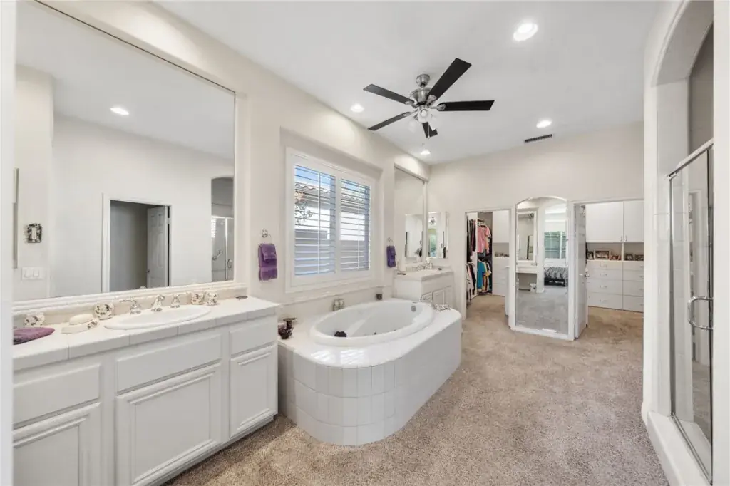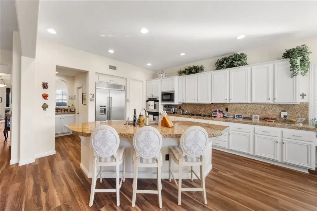 BEST PRICE PER SQUARE FOOT IN BEAR CREEK! Welcome to 36691 Kennemer Drive, a stunning residence located in the highly sought after Bear Creek gated community. From the moment you enter, you’ll be greeted by soaring ceilings, a grand entryway, and an abundance of natural light pouring in through expansive windows. The home features new luxury vinyl plank flooring throughout, creating a modern and elegant flow. At the heart of the home is a chef’s kitchen with an open concept design, perfect for indoor-outdoor entertaining and true California living. The kitchen offers a spacious island, butler’s pantry, bar area, and ample storage—ideal for gatherings both large and small. The floor plan is thoughtfully designed with two main floor bedrooms, including a sprawling primary suite featuring dual sinks, a spacious walk-in closet, and a spa like bathroom retreat. Upstairs, a massive loft/bonus room awaits, perfect for a home theater, game room, or lounge space. Along with the loft there are two additional spacious bedrooms with walk in closets sharing a private Jack and Jill bathroom. Situated on 1/3 of an acre, this property provides unmatched privacy and space. The backyard is an entertainer’s dream, featuring a covered patio, brand new jacuzzi, lush landscaping, mature trees, and a flourishing fruit and vegetable garden. The home also includes a two car garage plus a separate golf cart garage. Living in Bear Creek means access to world class amenities including a renowned Jack Nicklaus Signature Golf Course, pool and spa, clubhouse, pickleball and tennis courts, fitness center, playgrounds, and so much more. Conveniently located near Clinton Keith Road, you’ll enjoy easy freeway access and proximity to shopping, dining, and endless recreation. This is more than a home, it’s a lifestyle.