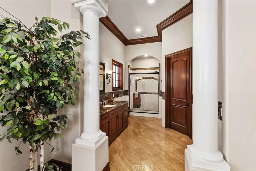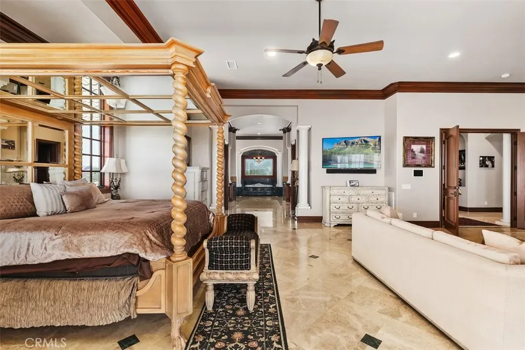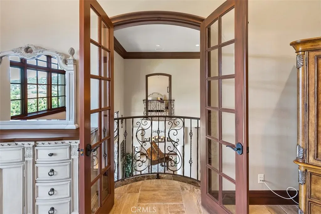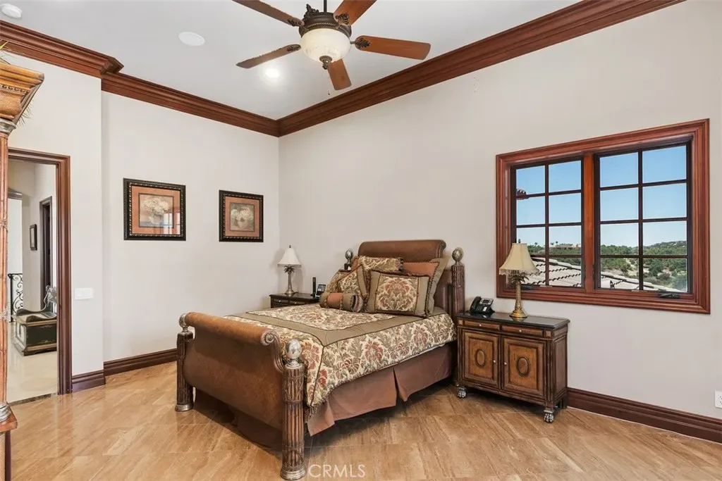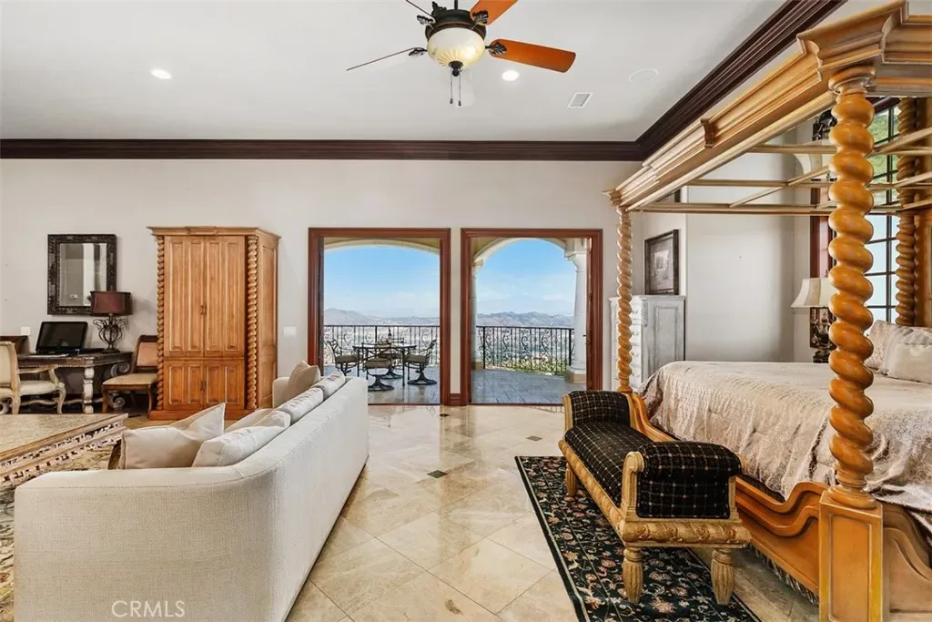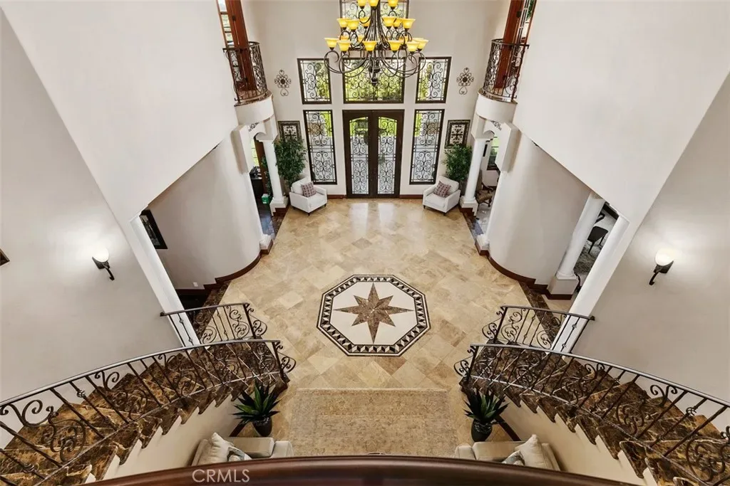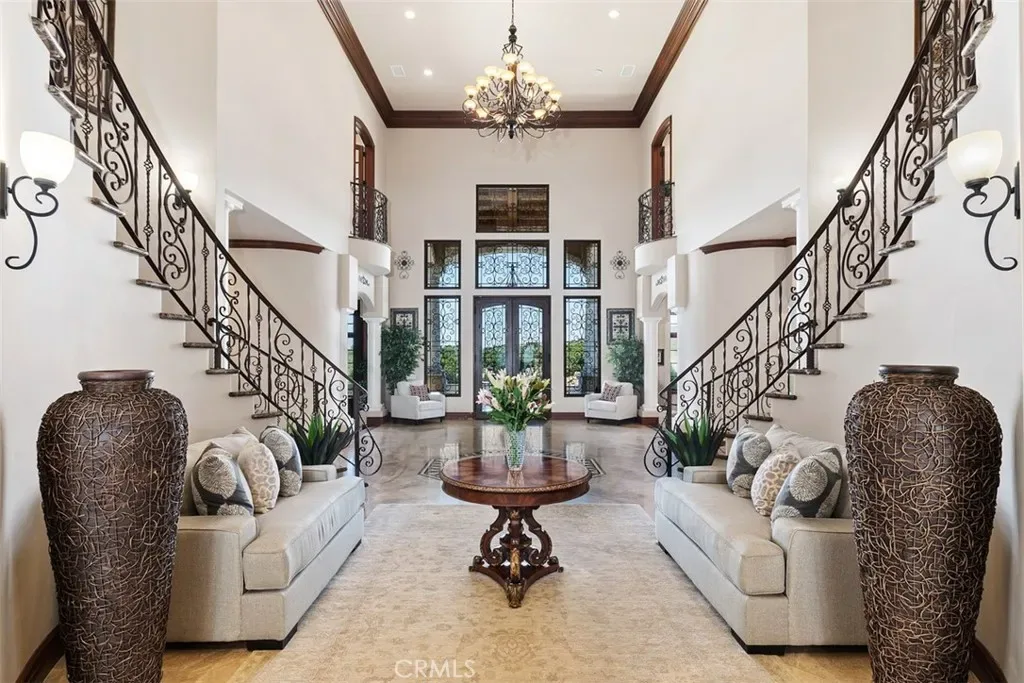 Welcome to Villa Dolce Vista. Commandingly positioned atop 20.39 ACRES at the north point of the EQUESTRIAN COMMUNITY of La Cresta, this Italian inspired masterpiece offers luxury amenities appreciated by the most discerning buyers. Impressive private GATED COMPOUND offers uninterrupted panoramic VIEWS of mountains, city lights, and the Temecula Valley. Encompassing nearly 14,000 SF, the resplendent home includes 5 EN-SUITE BEDROOMS, 8 BATHROOMS, a grand foyer with DUAL STAIRCASES and 24’ ceiling, elegant wood paneled STUDY, FORMAL DINING ROOM with fireplace and expansive city light view. Incredible CHEF’S KITCHEN includes a 20’ granite topped island, COPPER CEILING and LEDGER STONE WALLS. Extraordinary PRIMARY SUITE offers a FIREPLACE, BALCONY with staggering city light views, OPPULANT BATH with dual water closets, vanity areas, marble spa showers, and Jacuzzi tub. Massive GAME ROOM with full wet bar and access to the outdoor travertine deck with FOUNTAINS, INFINITY EDGE JEWEL SCAPE POOL AND SPA and two full outdoor BBQ kitchens. EIGHT CAR GARAGE with built in cabinetry. This SMART HOME is equipped with $155,000 in electronics that provides you with touch screen devices throughout the home. For extended family, a 1,777 SF SINGLE STORY 2 BEDROOM, 2 BATH BUNGALOW with two- 2 car attached garages. Energy efficient with a 47 KW 136 PANEL SOLAR SYSTEM powering both the main home and casita. 53’x40’ RV GARAGE totaling 2,120 SF for storage of two 45’ motorhomes plus all the toys. INCOME PRODUCING HAAS AVOCADO GROVE with automatic fertilization system and WELL watered with two 5000 gallon holding tanks. Additional building pad for future barn, tennis court or helipad. The La Cresta community is located mid-way between Orange County and San Diego County with convenient access to Ontario, San Diego, and John Wayne International Airport. This stunning estate is just minutes from the members only Bear Creek Golf Club offering a Jack Nicklaus designed golf course, tennis, and fine dining as well as the growing Temecula wine country.