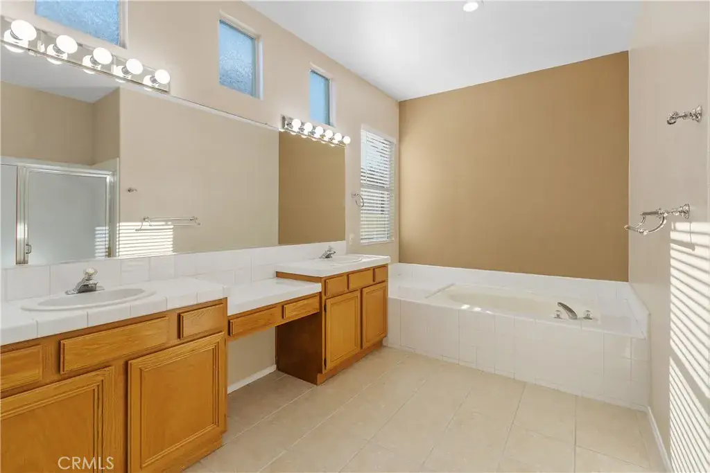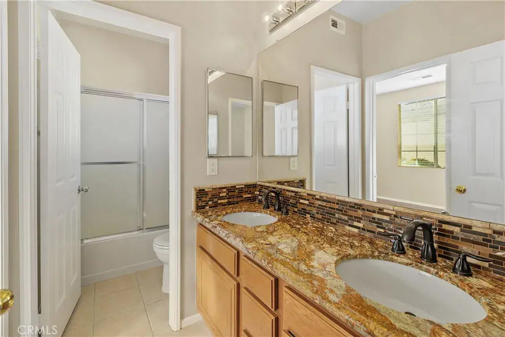 West Murrieta – Copper Canyon – Single Level home walking distance to Cole Canyon Elementary School. This Beautiful home offers tranquil Views of the Park, City, Hills and School. It offers 3 Bedrooms, 2 1/2 Bathrooms, 2311 Sqft with a Open Floor plan and High Ceilings throughout. The Kitchen has Granite Counter Tops, Separate Island, Dining Nook area, Walk-in Pantry, Refrigerator, Backyard Entry, and joins the Family Room area that shares a Double-sided Fireplace with the Formal Living Room. The Private Primary Suite has a separate Patio Entry and includes Dual Walk-in Closets, Dual Sinks in Bathroom with a large Tub and Shower. The 2nd Bedroom is large and has a Walk-in Closet and shares a full Bathroom with 3rd Bedroom. It also has a separate Formal Dining Room with Crown moldings, 3 Car Attached Garage, Separate Laundry Room, Dual Patio Covers, Additional Gated Side Yard, Vinyl Fencing on sides. Newer Air-conditioning & Heating System, New Blinds throughout, Laminate & Tile Flooring. New Interior Paint, Lots of Cabinets, Beautifully Landscaped, Located in the Murrieta School District, Centered in the neighborhood Trail Systems and Parks. Close to the Santa Rosa Platea, Lots of shopping and Intestate 15. No HOA and Low Taxes.