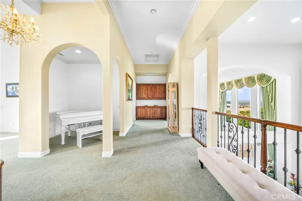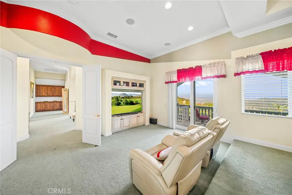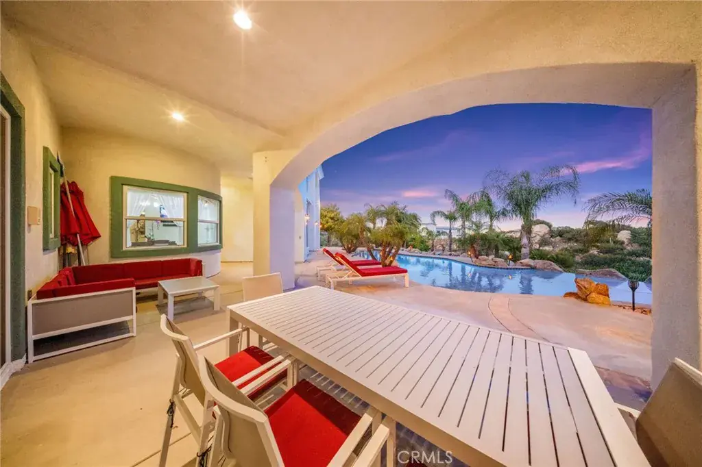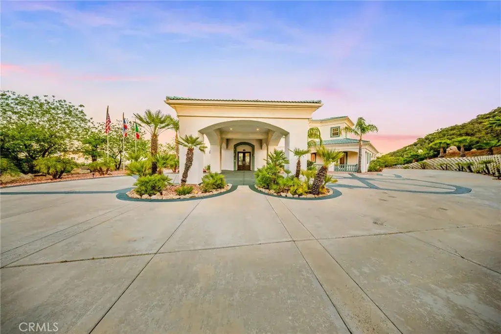 Exquisite Custom Estate with Panoramic Views in Prestigious La Cresta. Discover one of the most extraordinary homes currently available in Murrieta, offering over 6,400 sq ft of refined luxury on more than 5 acres, nestled in the highly coveted La Cresta community. Boasting 4 spacious bedrooms and 4.5 bathrooms, this exceptional property delivers the perfect blend of elegance, comfort, and functionality. Enter through a private, gated driveway to a grand double-door entrance, where you’re welcomed by soaring ceilings and a dramatic foyer with rich finishes. The open-concept layout is designed to highlight the sweeping 180-degree views of the Murrieta and Temecula Valleys, visible from nearly every room in the home. Walls of windows and glass doors seamlessly connect the indoor living space to the stunning backyard oasis. Step outside to experience true resort-style living with a sparkling pool and spa, built-in custom BBQ island, and a private guest cabana complete with its own bathroom and shower, ideal for hosting or extended stays. Entertain, relax, and soak in all this property offers. The gourmet chef’s kitchen is a culinary masterpiece, complete with high-end stainless steel appliances, granite countertops, custom cabinetry, a large center island with seating, and walk-in pantry. Entertain with ease in the formal living and dining rooms, breakfast nook, and expansive family room, all showcasing incredible views. A fully-equipped custom bar, complete with sink and mini fridge, anchors the impressive game room featuring a billiards table, shuffleboard, and a temperature-controlled wine cellar. Downstairs includes two private ensuite bedrooms, one is currently utilized as a home office with a separate entrance. Upstairs, two additional ensuite bedrooms with walk-in closets. The luxurious primary suite is a true retreat- enjoy sunrises from your private balcony, unwind in the jetted tub, sauna, or massive walk-in shower, and enjoy the expansive walk-in closet with built-in cabinetry and an adjacent private gym. Additional features include an attached 4-car garage with built-in storage, central vacuum system, water softener, security system with cameras, and a solar power system. Set within one of Murrieta’s most sought-after communities, this property offers tranquility, privacy, and easy access to top-rated schools, shopping, dining, and the renowned Temecula wine country. This one-of-a-kind estate is a rare opportunity-schedule your private tour today!