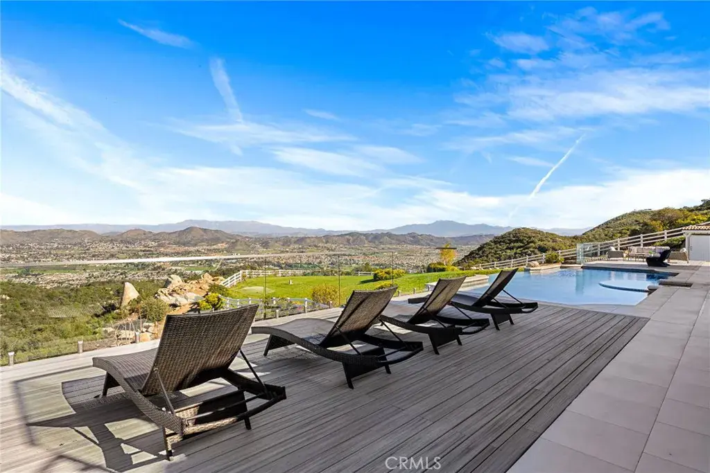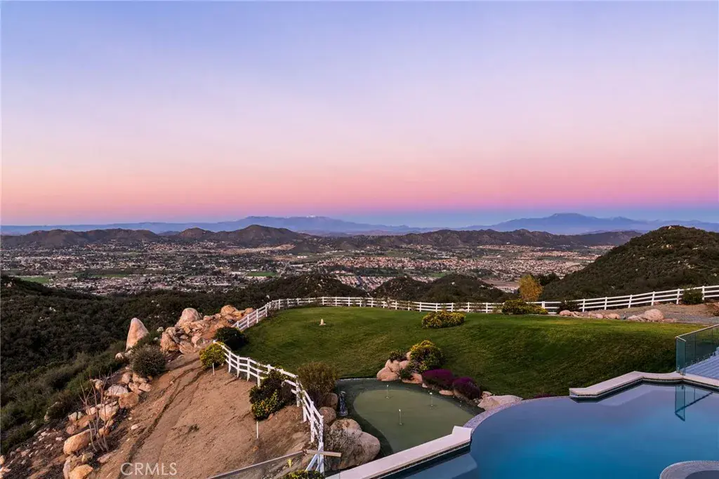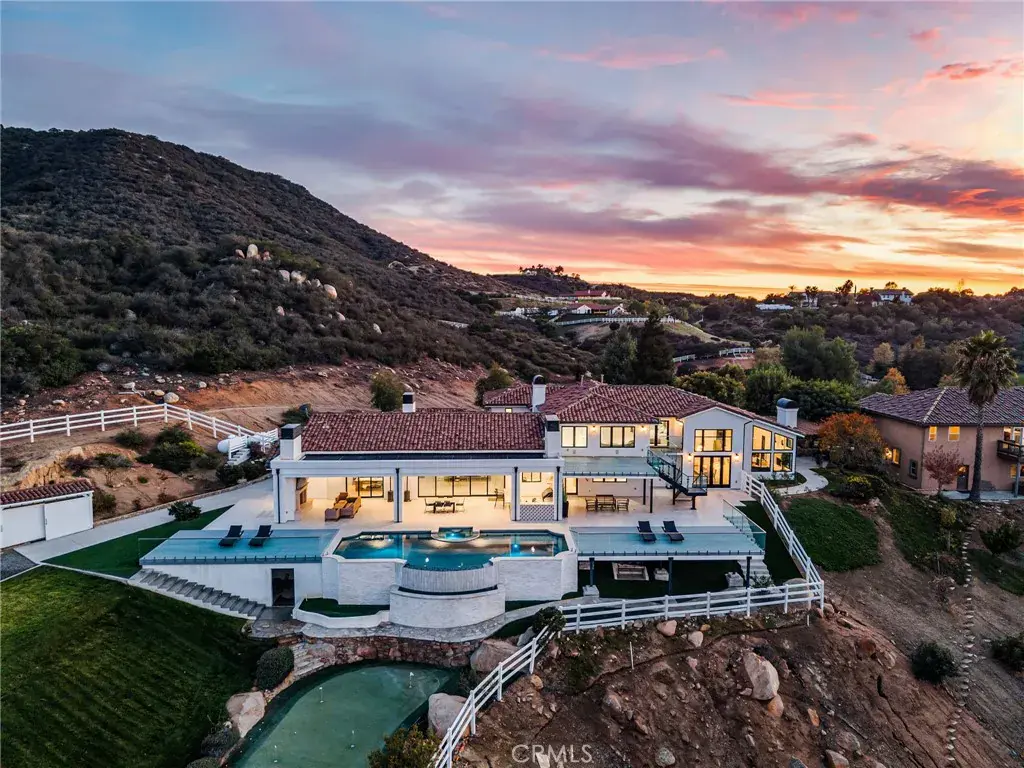 Set across an extraordinary 21 acres, you’ll find the “one-of-a-kind” Golden Crest Ranch Estate and Golden Oaks Park, located in the prestigious La Cresta enclave with minimum 5-acre parcels. A rare combination of commanding scale, privacy, and breathtaking, unobstructed panoramic views that are truly unmatched. At the heart of the property lies Golden Oaks Park, a private recreational sanctuary among lush landscape, ancient oaks and mature trees, featuring a tennis court w/pavilion, outdoor fireplace, shuffleboard, horse shoe pit, 3-hole par-three golf circuit, cowboy fireside camp, round pen, citrus grove, and scenic overlook woven together by meandering paths that pass by a flowing stream, pond and waterfall with seating areas for peaceful reflection. The gated estate is positioned on a knoll with sweeping vistas across rolling hills, cool breezes and open sky, consisting of 8550 square feet with 7 beds/9 baths including a separate 3 bed/1 bath guest house of 1950 sf. The main house was completely renovated in 2022 with no expense spared. Featuring a Great Room, gourmet kitchen, office, gym, home theater, wine storage and a series of elegant living spaces enhanced by 5 fireplaces, soaring beam ceilings, and walls of glass opening through bi-fold doors to bring the landscape indoors. The grounds are a private resort with infinity pool, spa, putting green, outdoor kitchen, covered pavilion with heaters, outdoor fireplace lounge, and more than 2500 sf of expansive decks and covered terraces for grand-scale entertaining. The estate unfolds into a vast canvas with extraordinary potential for equestrian trails, vineyards, orchards, supported by an existing barn with infrastructure to accommodate up to 10 horses. Adding to the mystique, locals tell stories this property was once home to a vibrant gold mine during California’s early mining era. While the original mine was never formally documented and is believed to have been abandoned long ago, the legend persists— the pool service still reportedly discovers flecks of gold in the pool’s filtration system. The property is further enhanced by a large owned solar field, dual water sources (city and well), offering long-term self-sufficiency and cost savings. Featuring a 6 car over-sized garage. With the exceptional infrastructure, this is not simply a home, but a once-in-a-generation family compound offering scale, views, privacy, lifestyle, and future memories without compromise. Add’l adjacent land available.