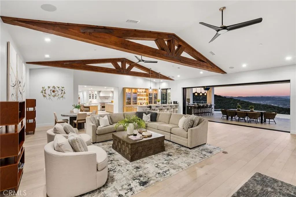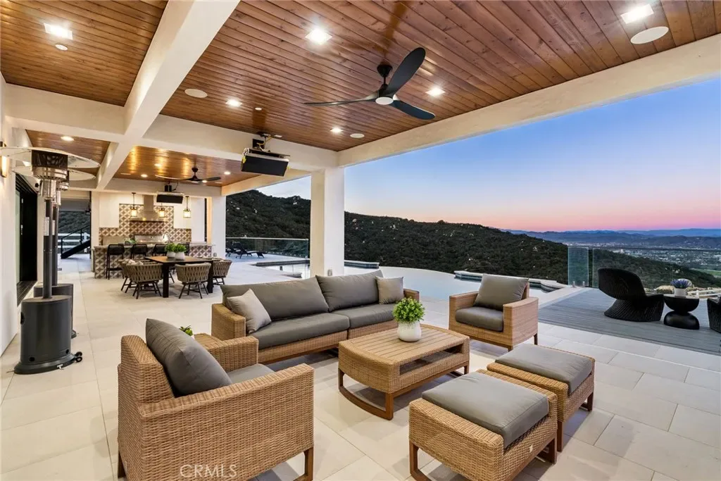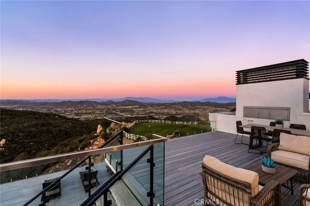 Set across an extraordinary 86 acres spanning five parcels you’ll find the “one-of-a-kind” Golden Crest Ranch Estate and Golden Oaks Park, located in the prestigious La Cresta enclave with minimum 5-acre parcels. A rare combination of commanding scale, privacy, and breathtaking, unobstructed panoramic views that are truly unmatched. At the heart of the property lies Golden Oaks Park, a private recreational sanctuary among lush landscape, ancient oaks and mature trees, featuring a tennis court w/pavilion, outdoor fireplace, shuffleboard, horse shoe pit, 3-hole par-three golf circuit, cowboy fireside camp, round pen, citrus grove, and scenic overlook woven together by meandering paths that pass by a flowing stream, pond and waterfall with seating areas for peaceful reflection. The gated estate is positioned on a 21 acre knoll with sweeping vistas across rolling hills, cool breezes and open sky, consisting of 8550 square feet with 7 beds/9 baths including a separate 3 bed/1 bath guest house of 1950 sf. The main house was completely renovated in 2022 with no expense spared. Featuring a gourmet kitchen, office, gym, home theater, wine storage and a series of elegant living spaces enhanced by 5 fireplaces, soaring beam ceilings, and walls of glass opening through bi-fold doors to bring the landscape indoors. The grounds are a private resort with infinity pool, spa, putting green, outdoor kitchen, covered pavilion with heaters, outdoor fireplace lounge, estimated 2500 sf of expansive decks and covered terraces for grand-scale entertaining. The estate unfolds into a vast canvas with extraordinary potential for equestrian trails, vineyards, orchards, additional residences, supported by an existing barn with infrastructure to accommodate up to 10 horses. Locals tell stories this property was once home to a vibrant gold mine during California’s early mining era. While the original mine was never formally documented and is believed to have been abandoned long ago, the legend persists— the pool service still reportedly discovers flecks of gold in the pool’s filtration system. The property is further enhanced by a large owned solar field, dual water sources (city and well), offering long-term self-sufficiency and cost savings. Featuring a 6 car over-sized garage. With the exceptional infrastructure, this is not simply a home, but a once-in-a-generation family compound offering scale, views, privacy, lifestyle, and future memories without compromise. See MLS OC26015017