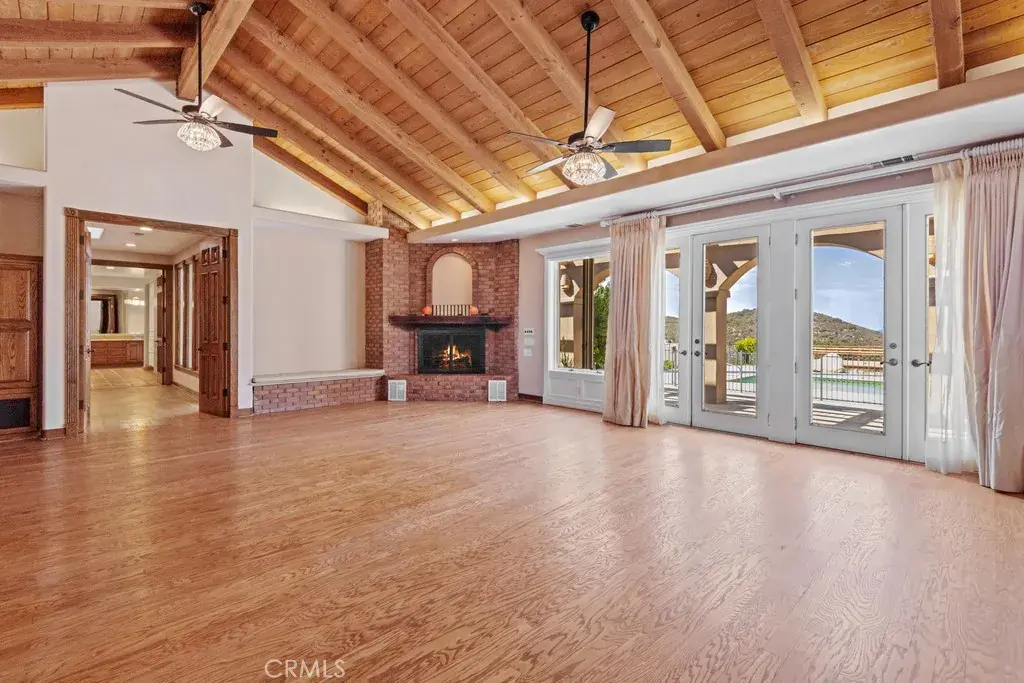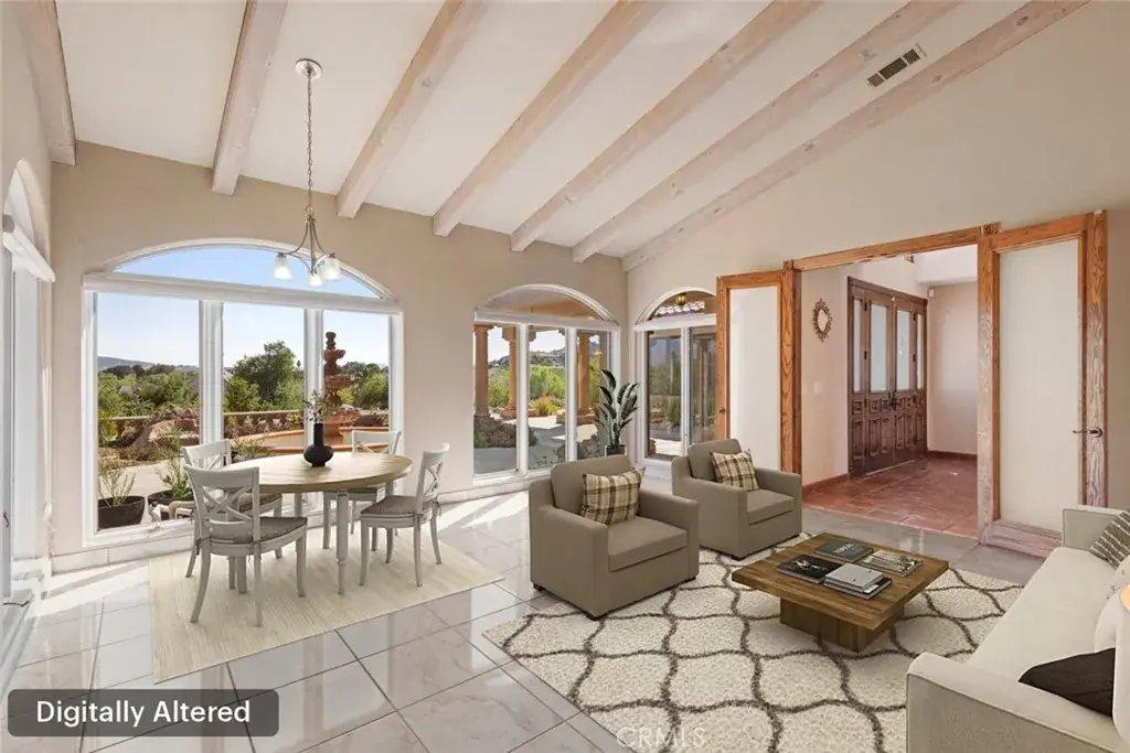 HUGE PRICE REDUCTION! Beautiful Grand Equestrian Estate with Panoramic Views & Endless Possibilities in La Cresta. Set atop 5.55 breathtaking acres, this spectacular La Cresta equestrian estate offers panoramic views from every window, luxurious living spaces, and versatile additions including a studio casita and a converted caretaker home attached to the barn. A 5-stall barn, RV garage, fenced pool with view deck & outdoor kitchen, and indoor spa make this a true dream property. Enter through solid wood double doors into a stunning foyer with terra cotta tile, leading to formal living and dining rooms featuring marble floors, wood-beamed vaulted ceilings, and oversized windows showcasing majestic mountain and garden views. The grand family room impresses with a fireplace, wood floors, custom built-ins, and French doors to the patio and pool. The spacious kitchen includes granite counters, wood cabinetry, a large island, and views of the pool and mountains. A den or office, additional flex space with built-ins, and access to the spa room offer flexible living. The primary suite boasts incredible views, a fireplace, private office, outdoor access, and a luxurious en suite with soaking tub, dual vanities, and two walk-in closets. Upstairs via two staircases, find a spacious loft, 3 bedrooms, and a huge balcony. Two junior suites downstairs feature private baths and walk-in closets, plus an additional den/bedroom. The studio casita includes a full bath, walk-in closet, and kitchenette space. The attached barn unit offers a living area, kitchen, 2 bedrooms, and a bathroom—perfect for guests or caretakers. There’s a leased solar system for energy efficiency. Additional adjacent 5-acre parcel also for sale on Via Baya—combine for a rare 10+ acre equestrian estate!